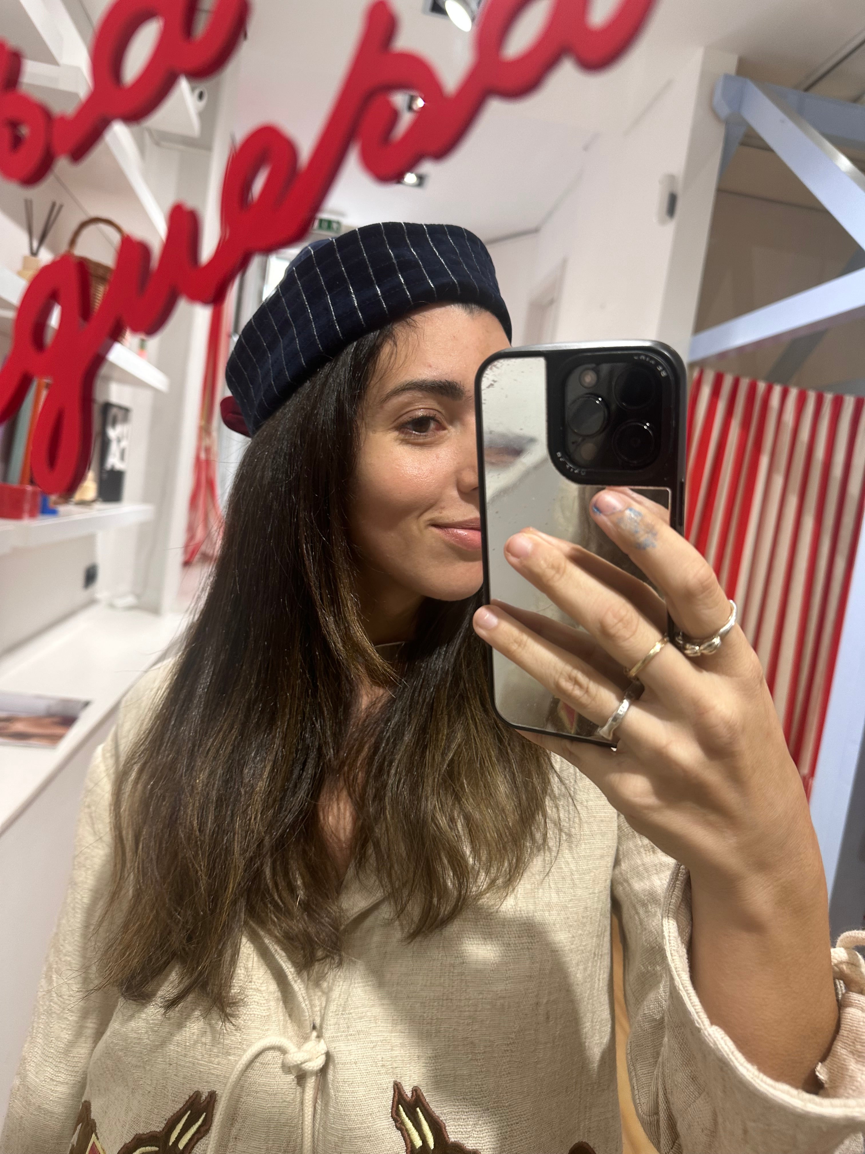 ASSUNÇÃO is a velvet sailor-style hat with a bow at the back for easy adjustment.