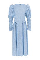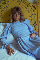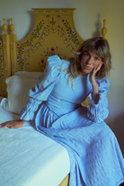 Long, with elasticated balloon sleeves and cuts at the hips, it's cool, light, and full of that simple charm—perfect for afternoons at grandma's house.