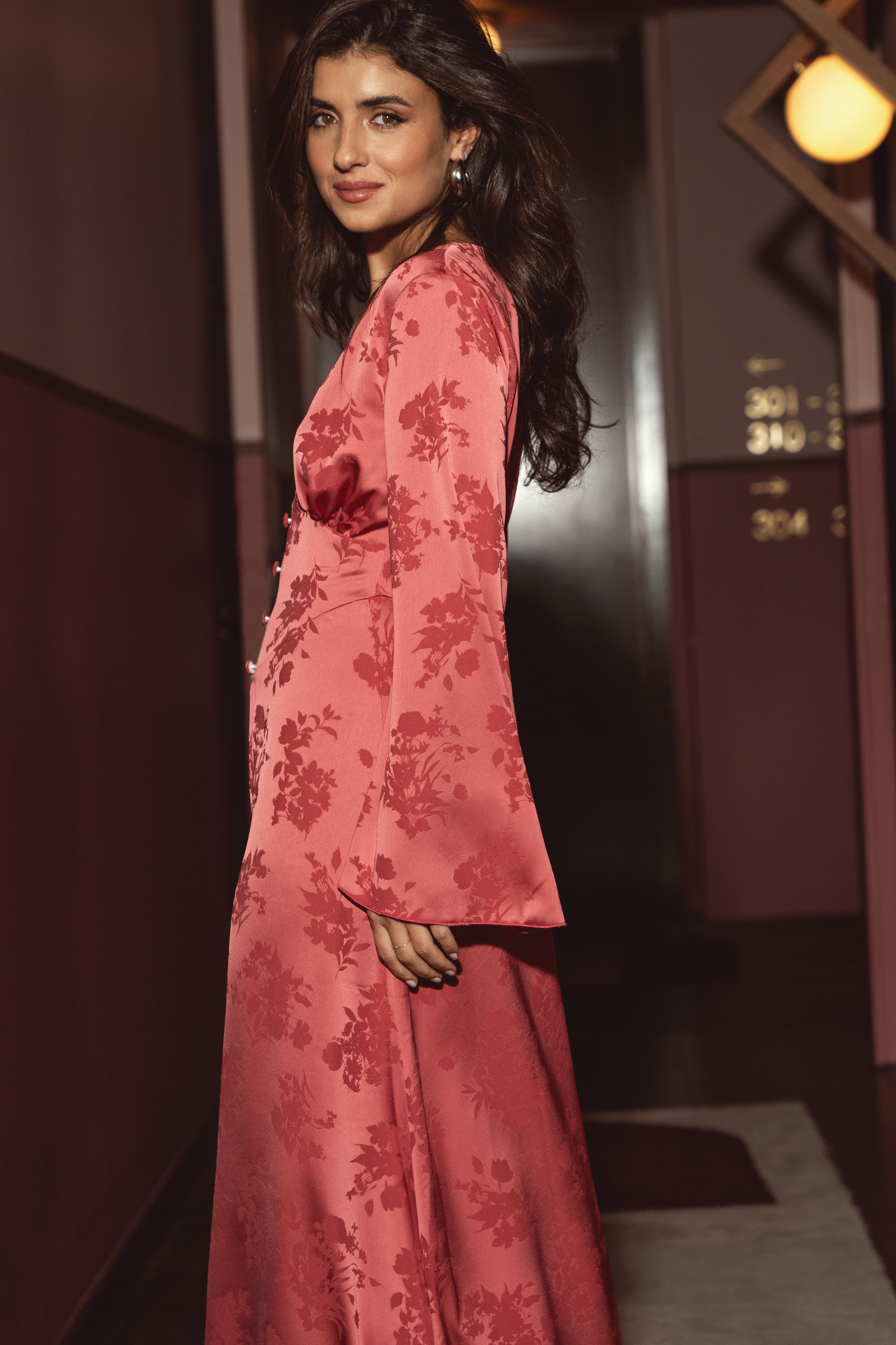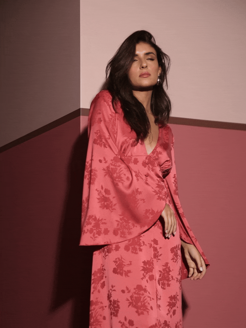 We don't know which details we like most, the long bell-bottom sleeves or its feminine, outlined silhouette. But we know that this is one of our favorite models and we are sure you will like it as much as we do.