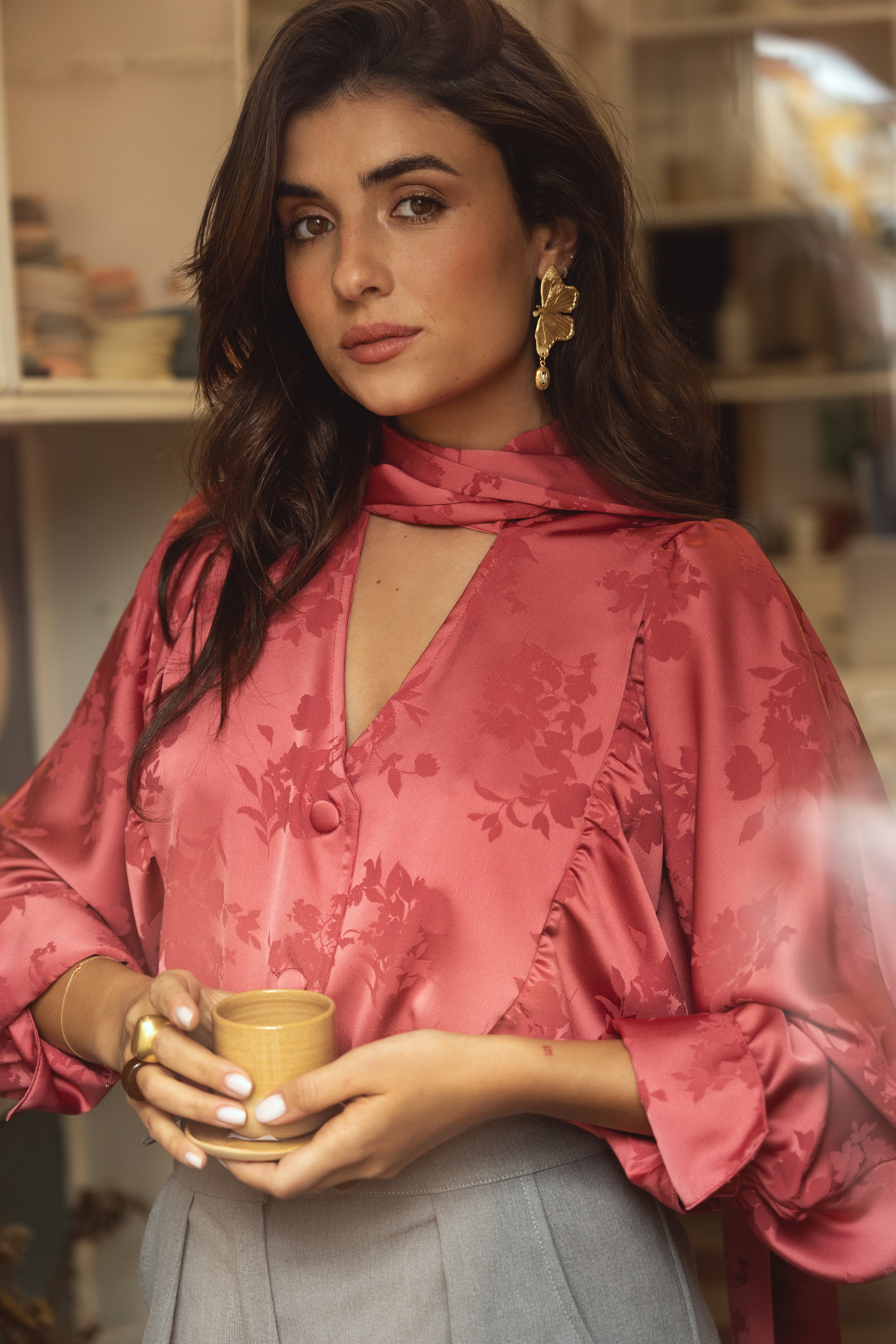 In this renewed version, we added a built-in scarf, which can be worn with a bow or loose, giving an extra touch of femininity and romanticism.