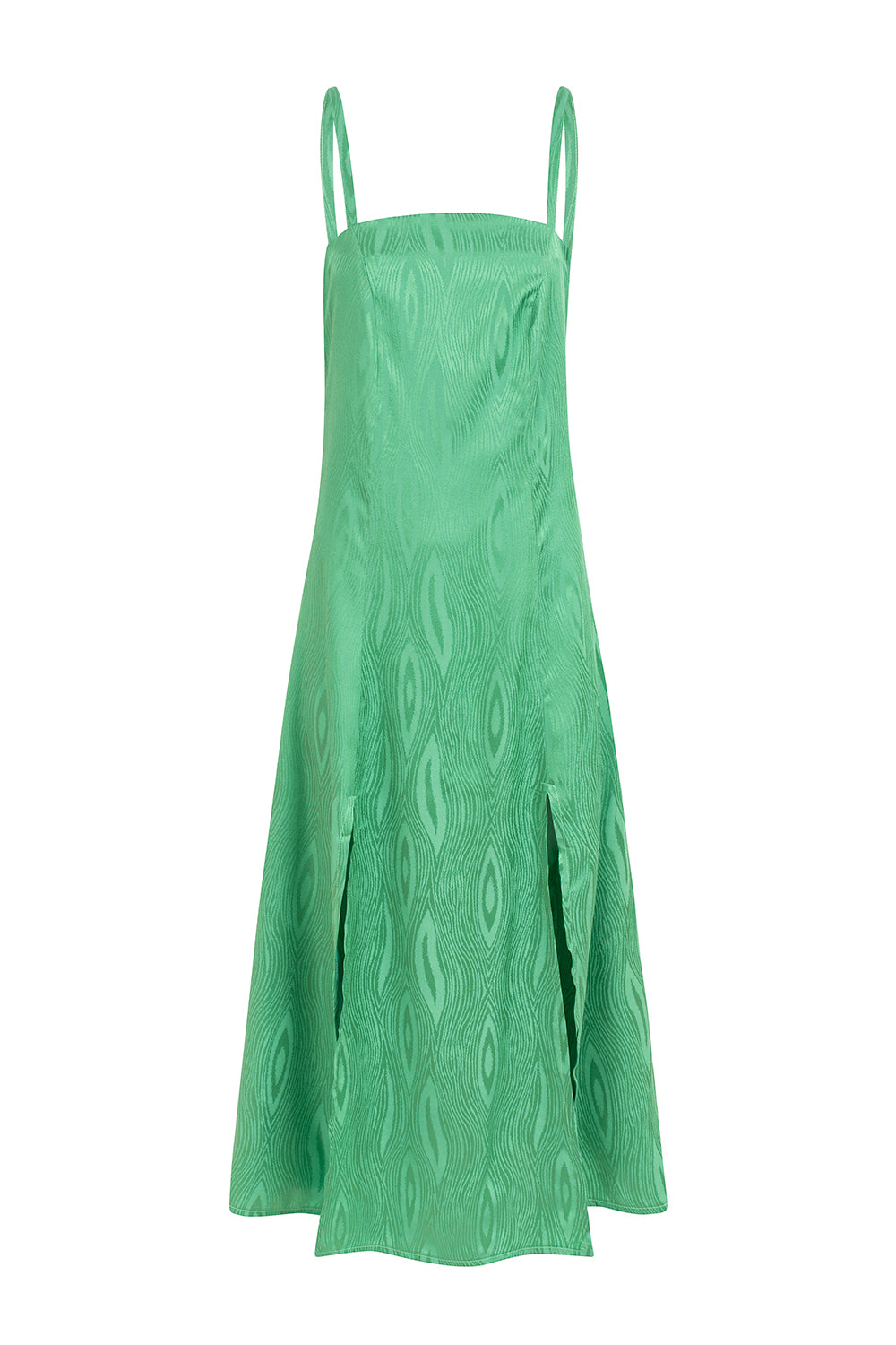 Este vestido de linhas direitas e alças spaghetti é perfeito para qualquer evento da estação quente. Com um decote arredondado e alças finas, bem como duas aberturas na frente, esta peça poderá ser conjugada com acessórios mais statement ou mais subtis, consoante o look que procura.