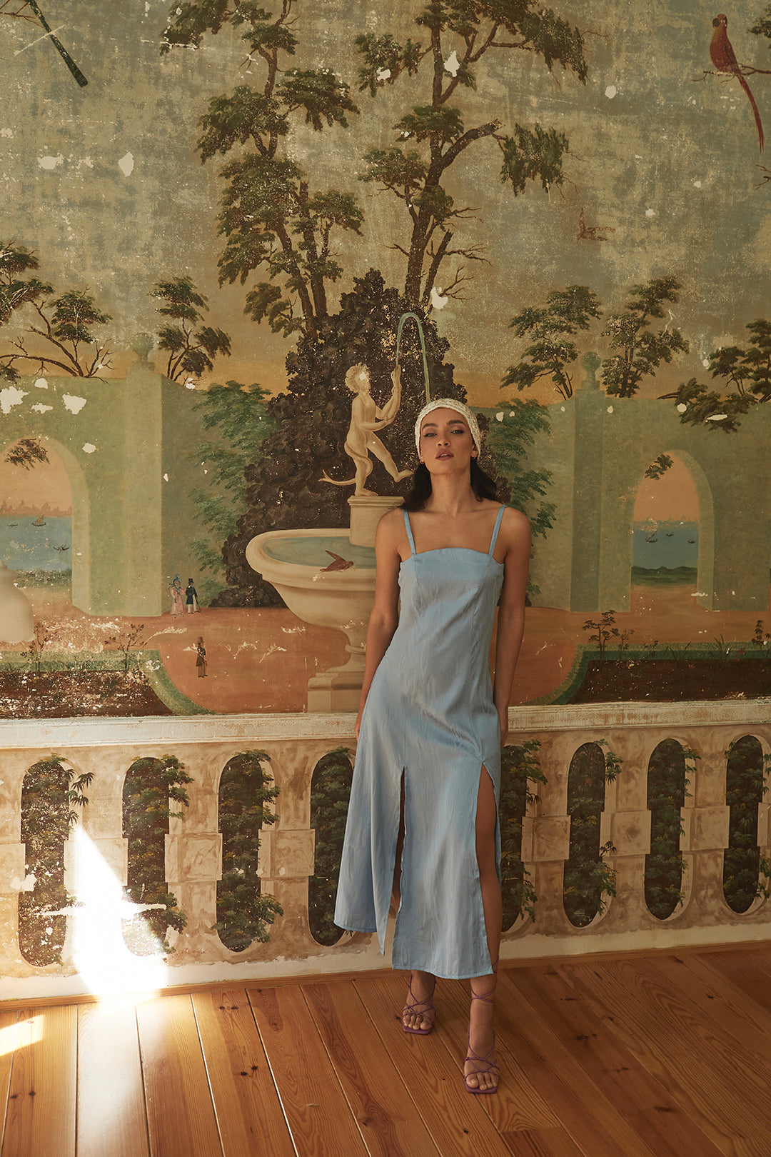 Este vestido de linhas direitas e alças spaghetti é perfeito para qualquer evento da estação quente. Com um decote arredondado e alças finas, bem como duas aberturas na frente, esta peça poderá ser conjugada com acessórios mais statement ou mais subtis, consoante o look que procura.