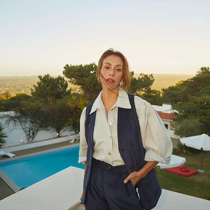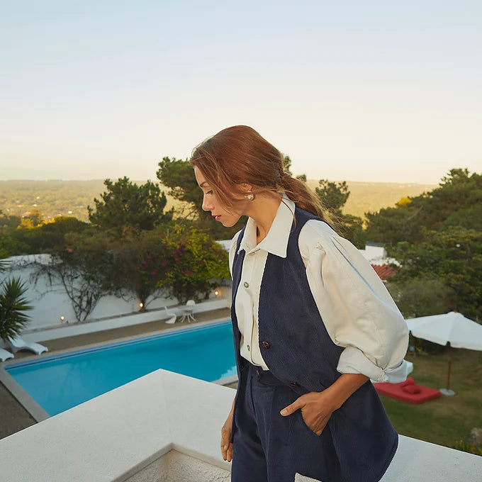 This button-front vest has a classically tailored cut made from corduroy yet breathable and lightweight. Complete the set with the matching Cindy trousers.
