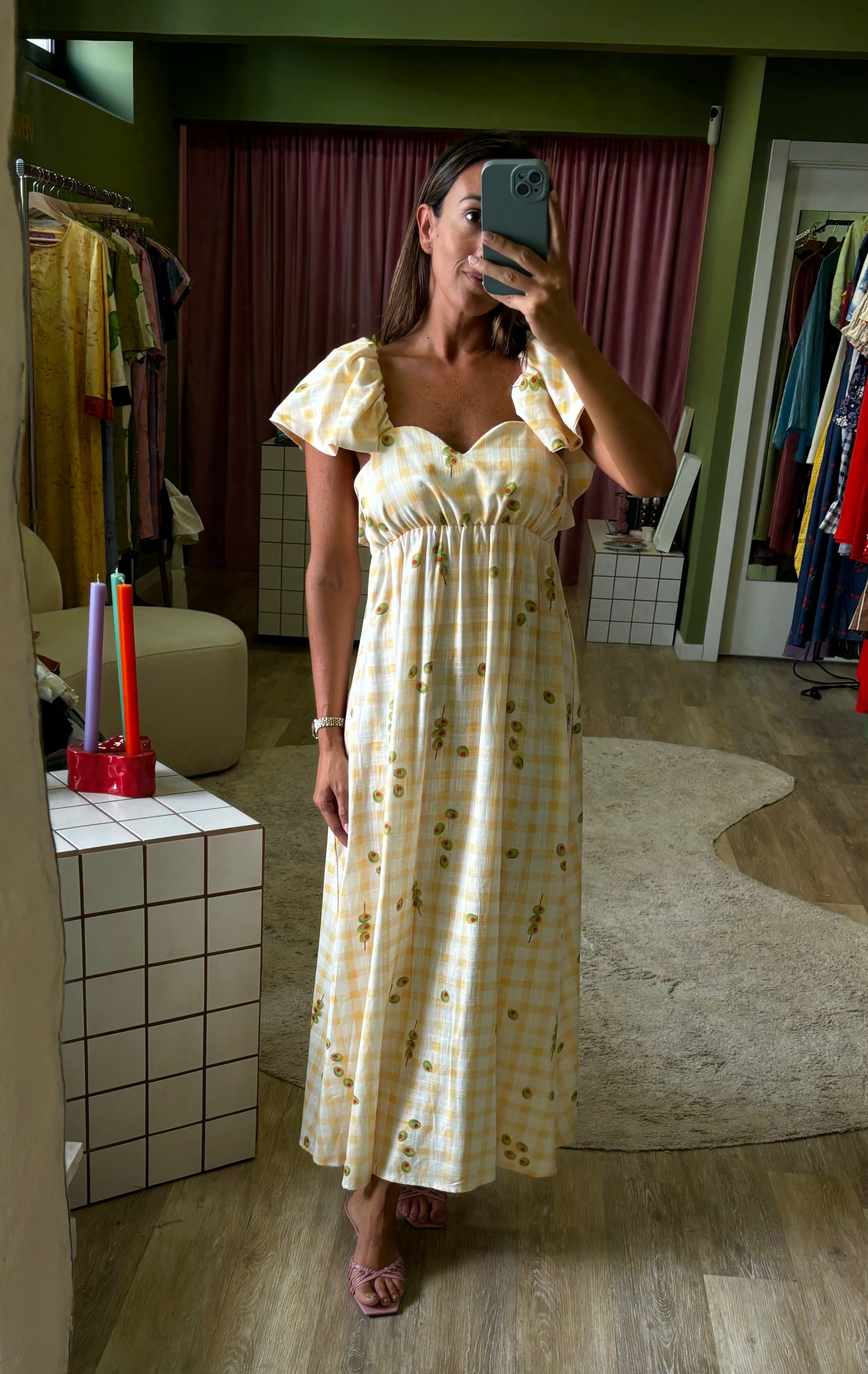 Our dress with ruffled short sleeves and empire cut is undoubtedly a bestseller. This feminine piece can be worn in any context. You can wear yours with flat sandals for everyday wear, or you can opt for high heels for a cocktail in the late afternoon.