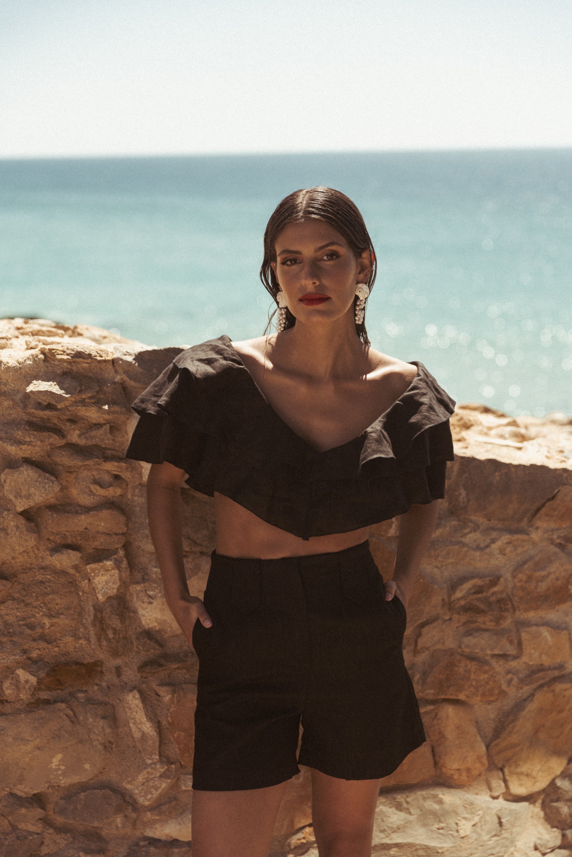 Cortados em linho, estes mini-shorts foram desenhados com cintura super subida e um fitting relaxed.