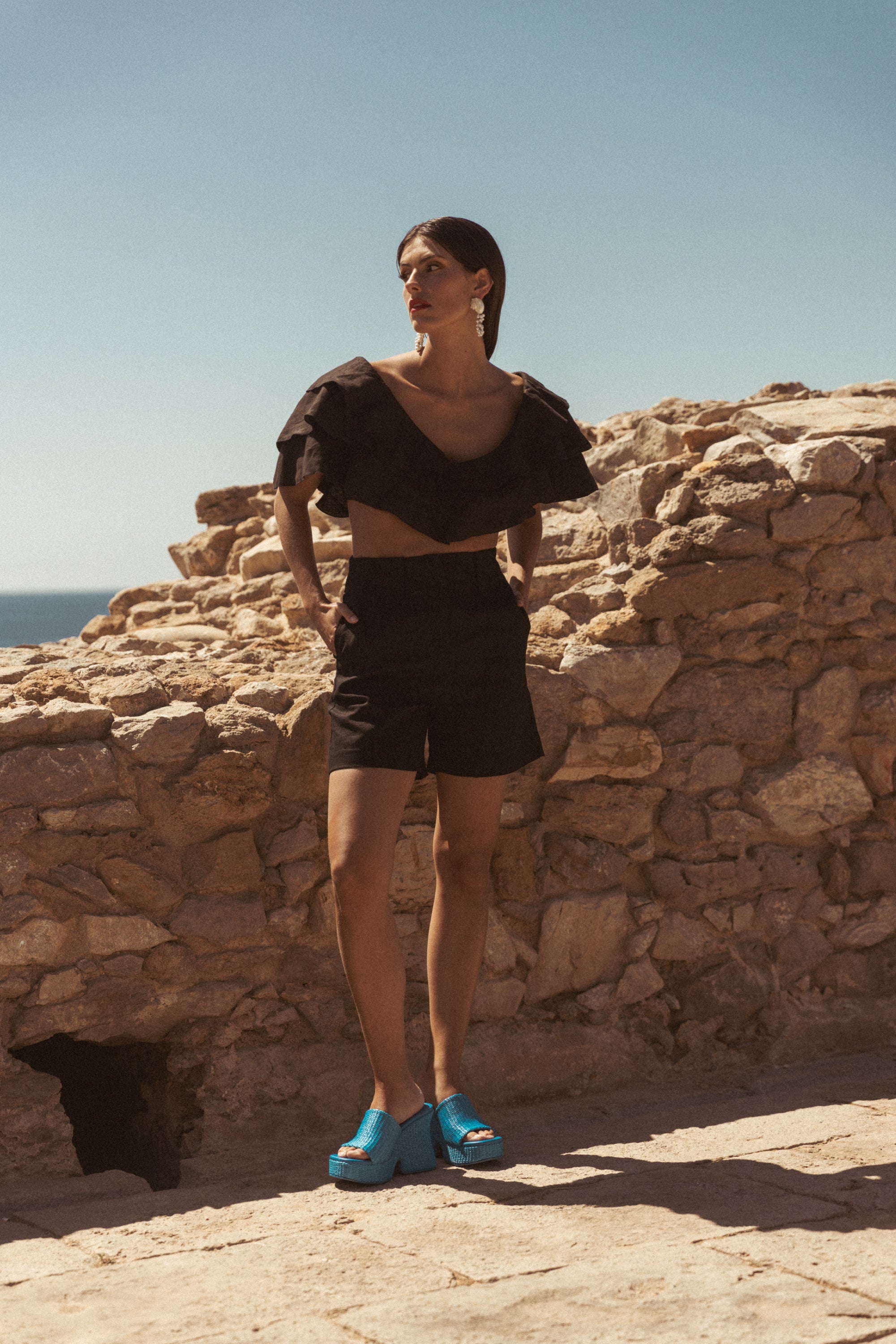 Crafted from a lightweight linen , these mini shorts feature an ultra high-rise waist, and a relaxed silhouette.
