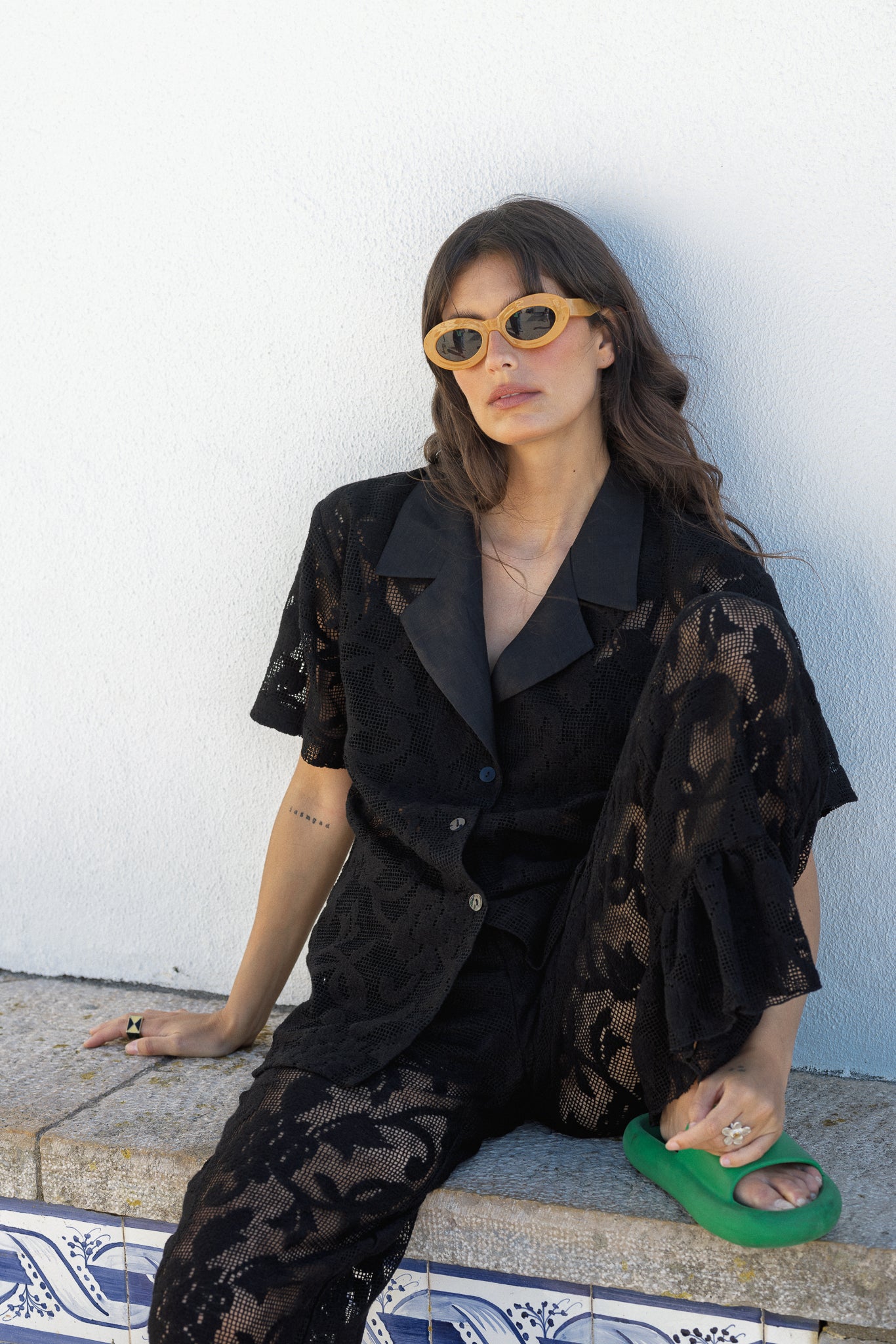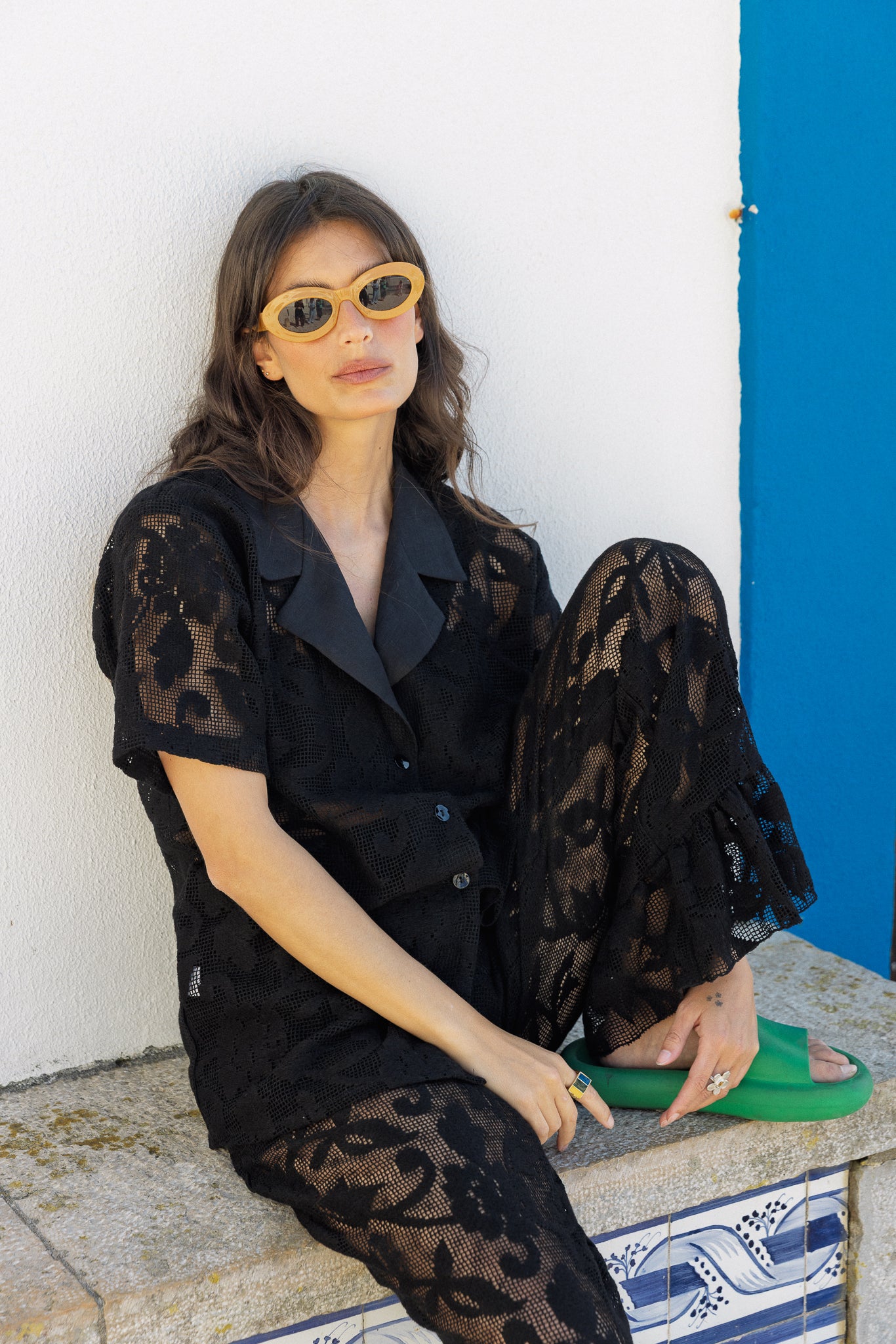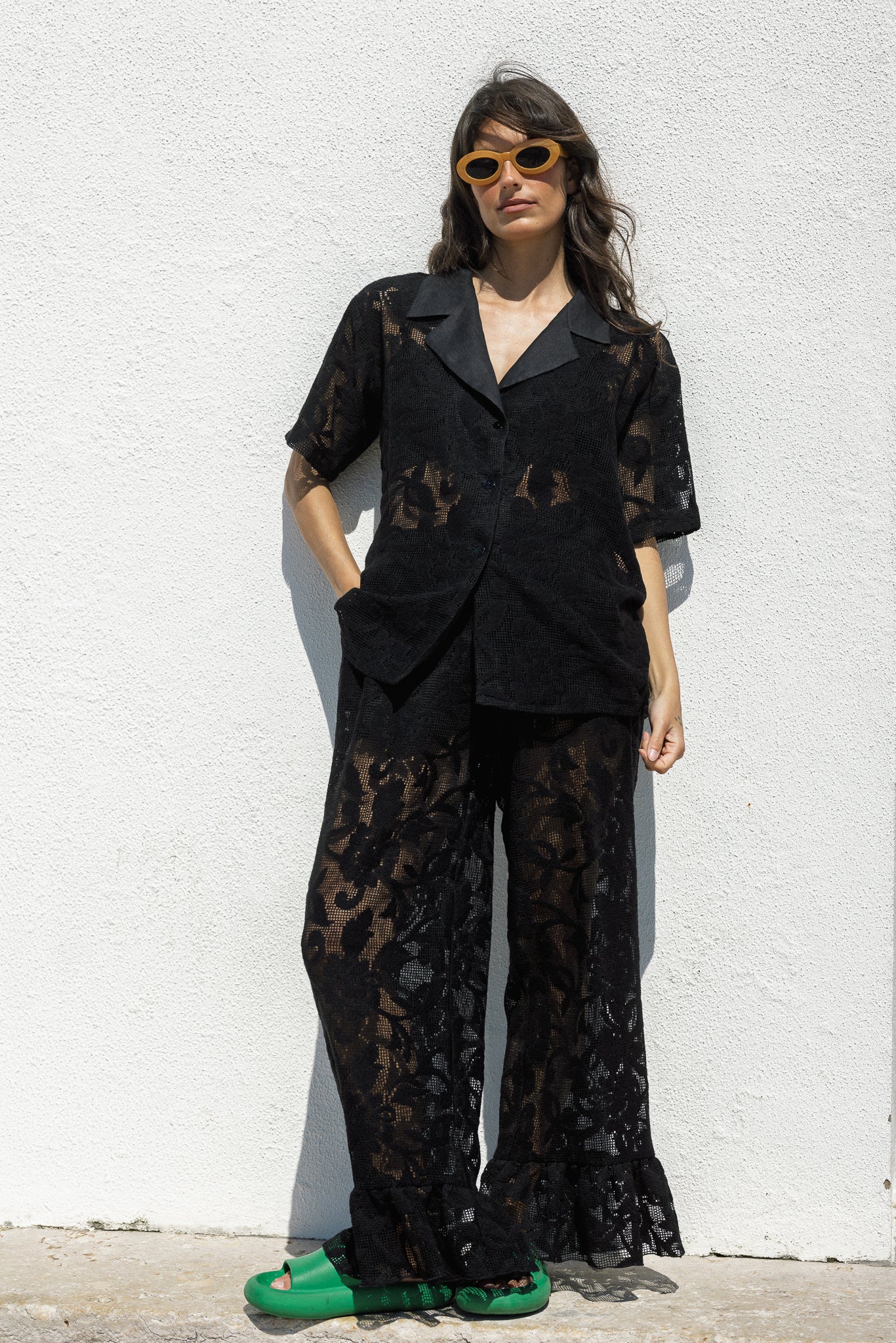 Made from black embroidered fabric, it pairs perfectly with TERESA pants for a traditional but very modern and stylish look.