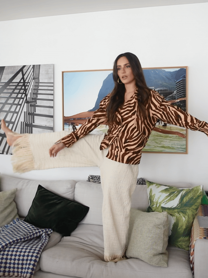 Com o seu corte wide-leg e cintura subida de elástico, estas calças em malha jersey com relevos são uma adição perfeita para os seus looks de Primavera.
