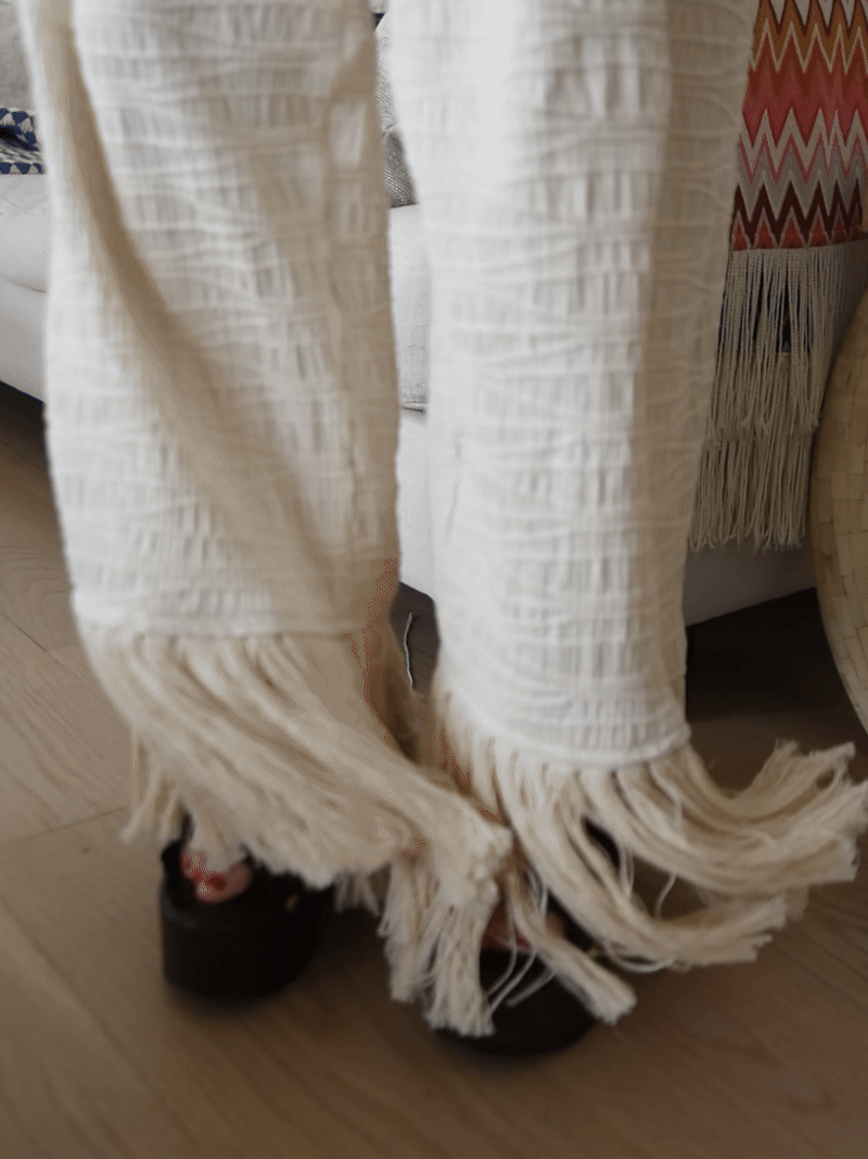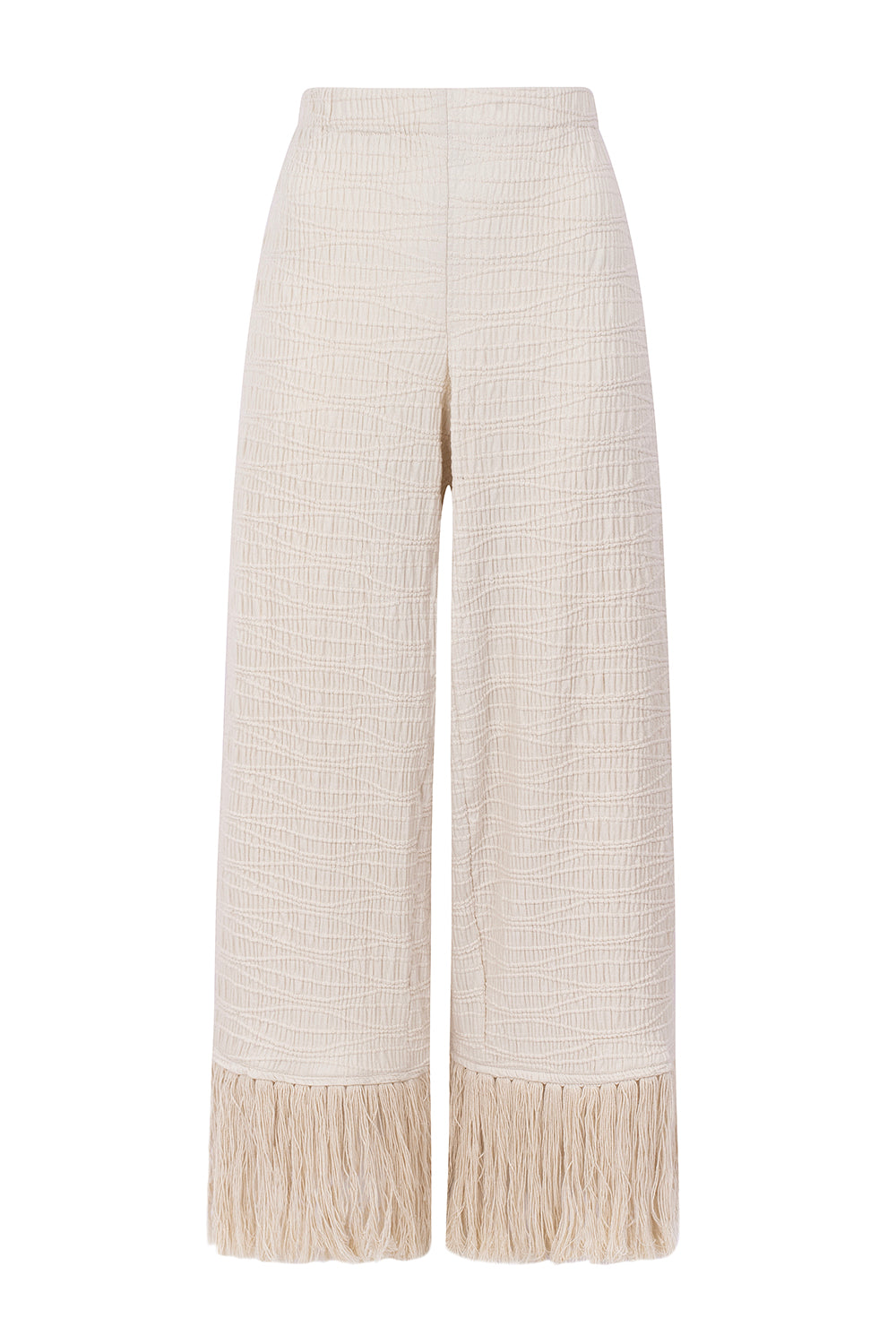 With their wide-leg cut and high elastic waist, these pants made of jersey knit with reliefs are a perfect addition to your spring looks.