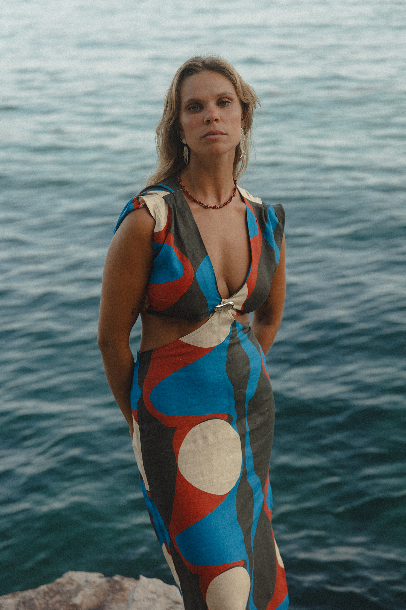O HORIZON dress é um vestido fresco, feminino e minimalista. Com aplicação de uma peça metálica no centro do peito e aberturas na lateral, este vestido é perfeito para festas de fim de dia, caminhadas à beira mar ou um passeio pelo sua cidade predileta.