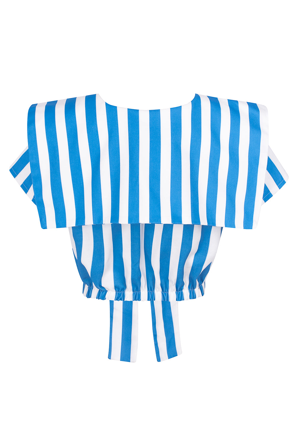 Inspired by sailors' shirts, with a collar and elastic waist, this fun crop top will be perfect for the hottest days of your summer. Combine it with the OLGA skirt for the perfect look!
