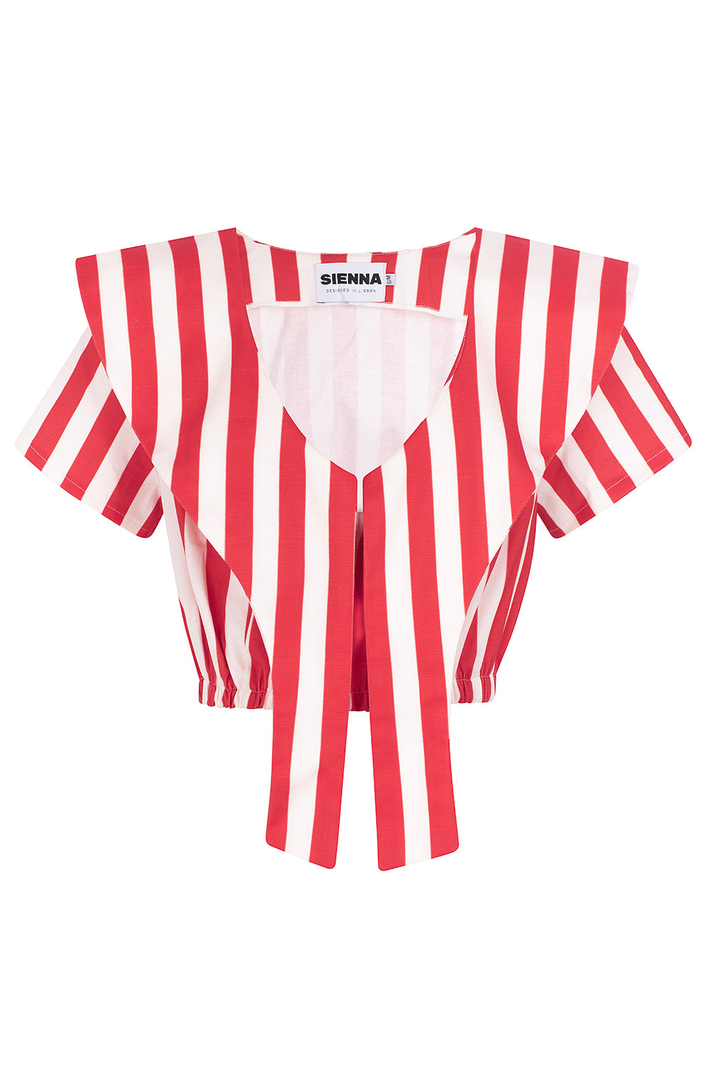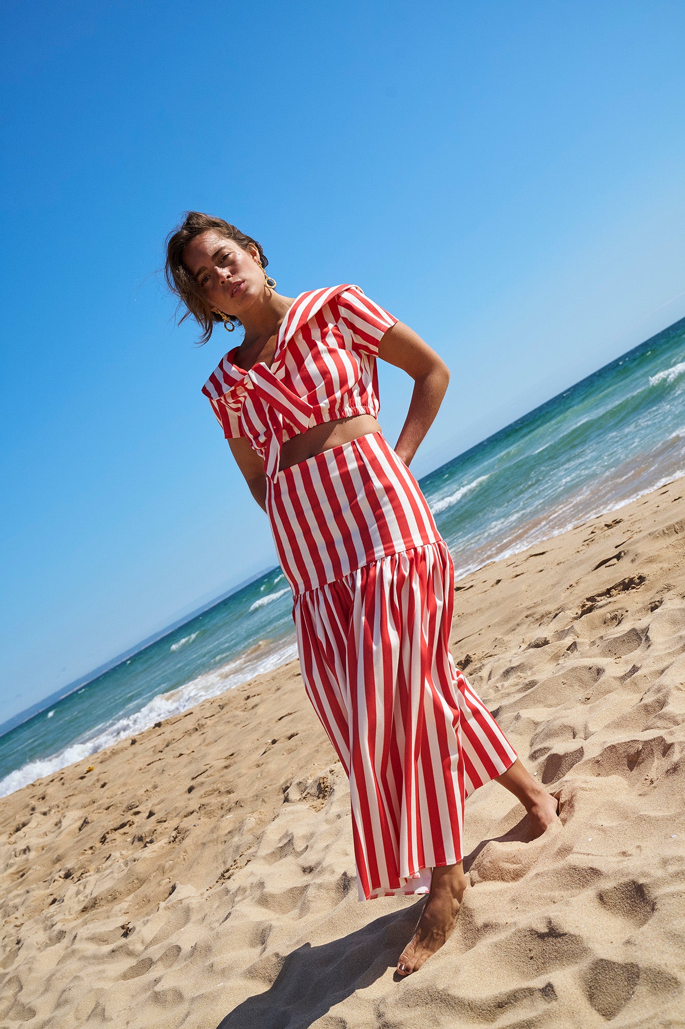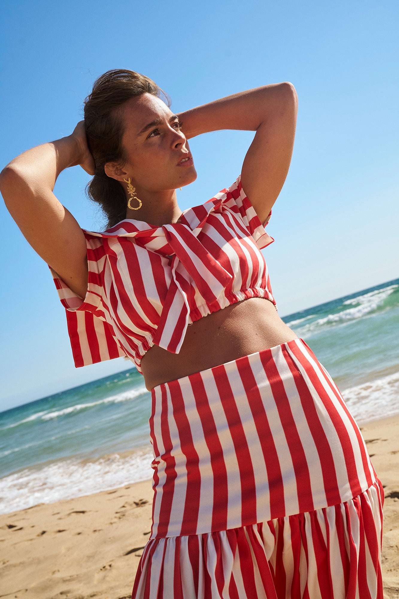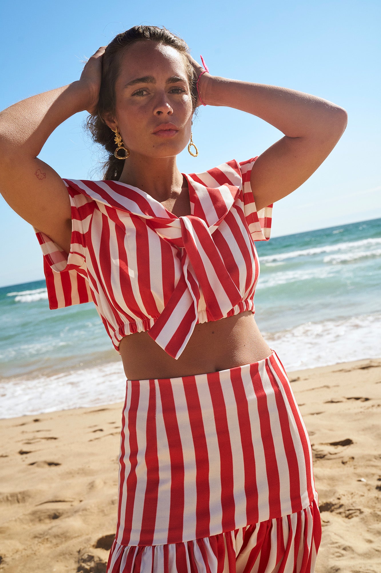 Inspired by sailors' shirts, with a collar and elastic waist, this fun crop top will be perfect for the hottest days of your summer. Combine it with the OLGA skirt for the perfect look!