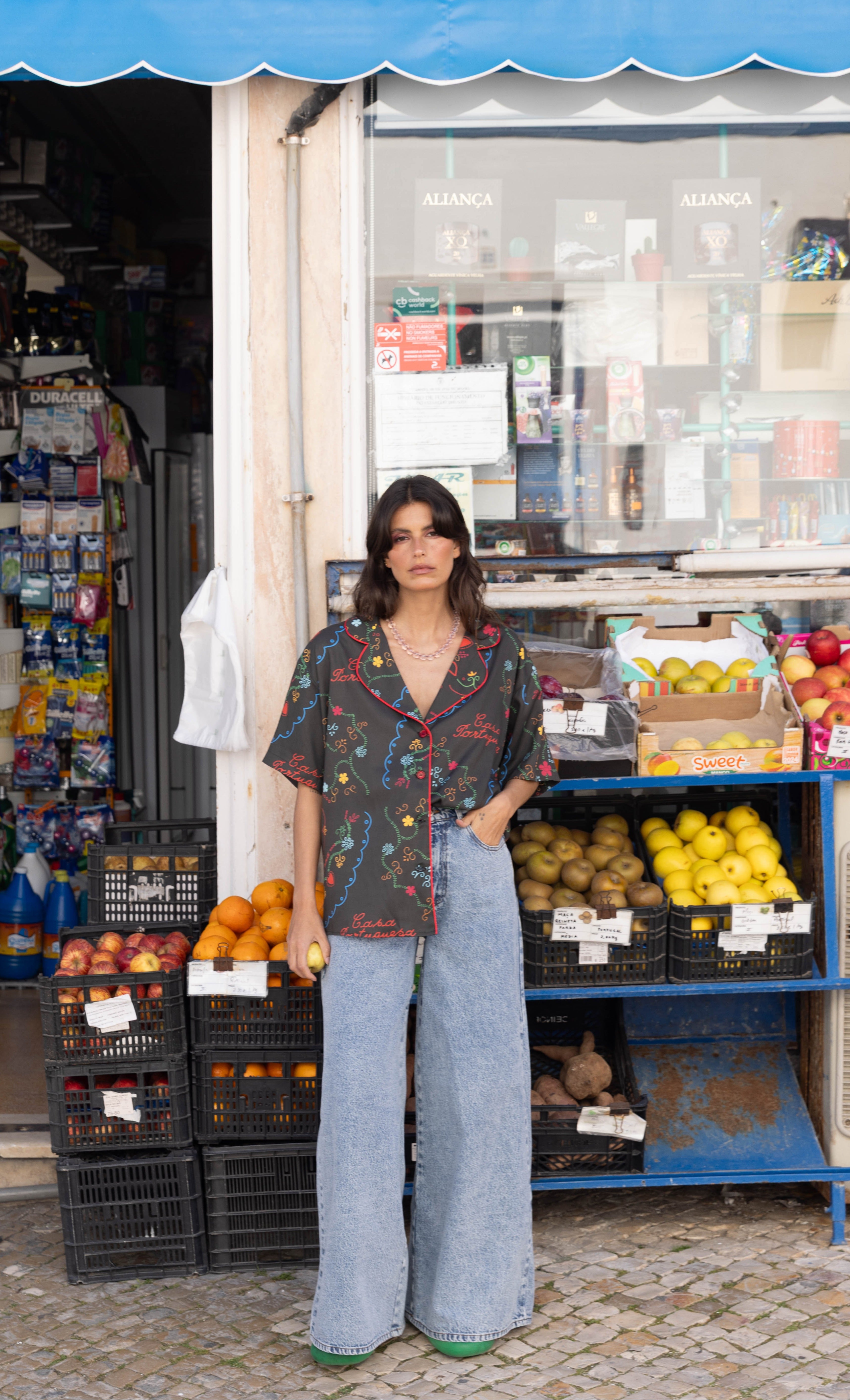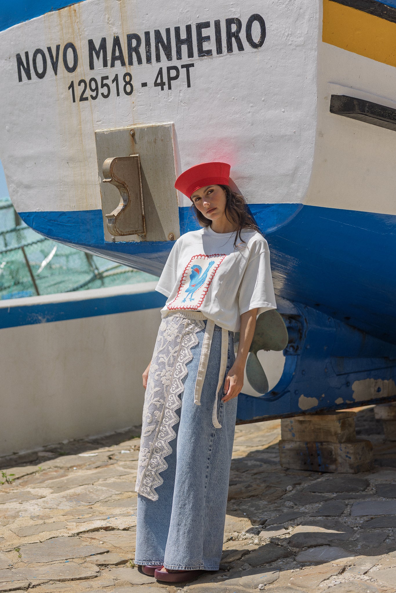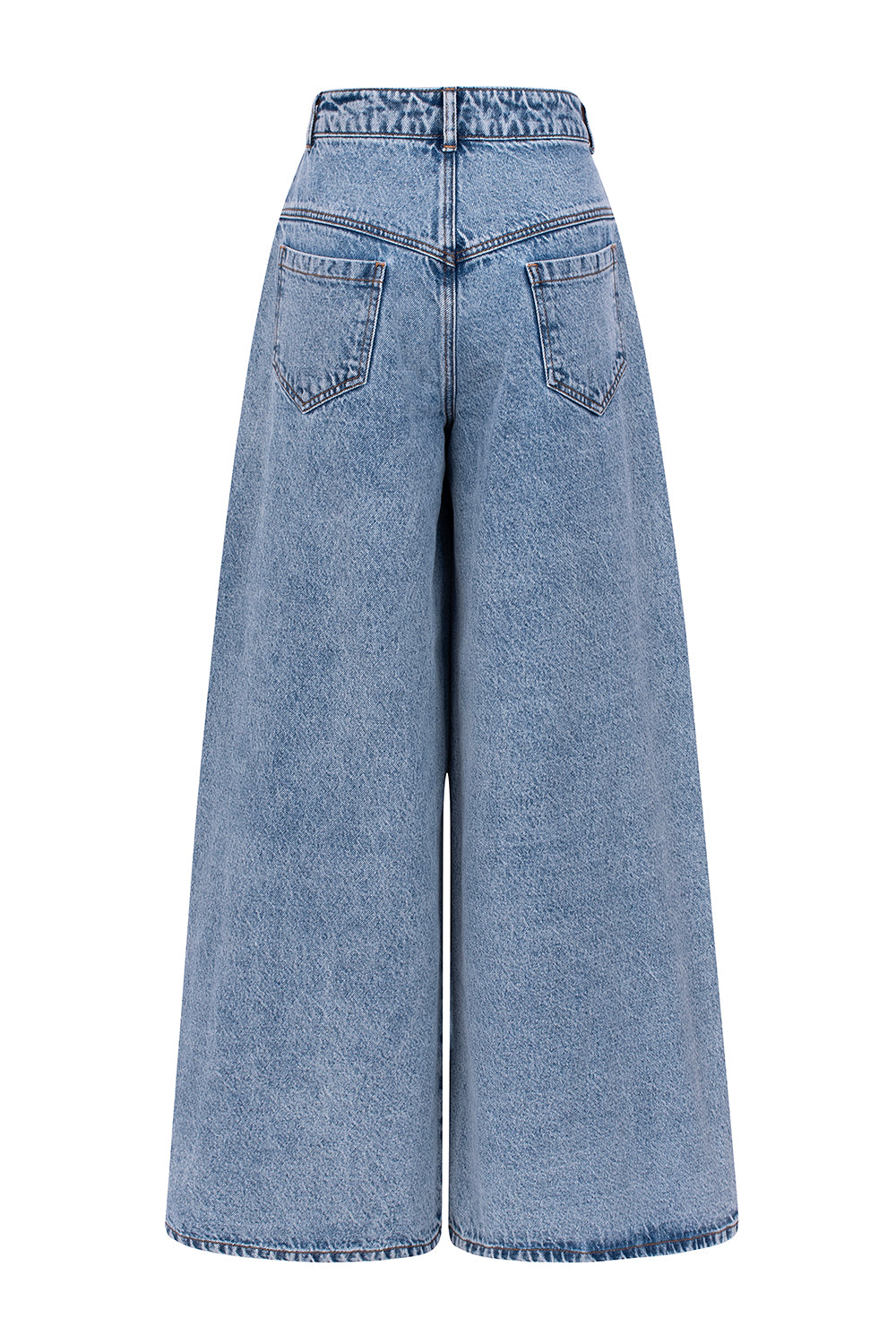 Eleve o seu estilo com as nossas icónicas calças MAYRA, agora em denim azul claro.