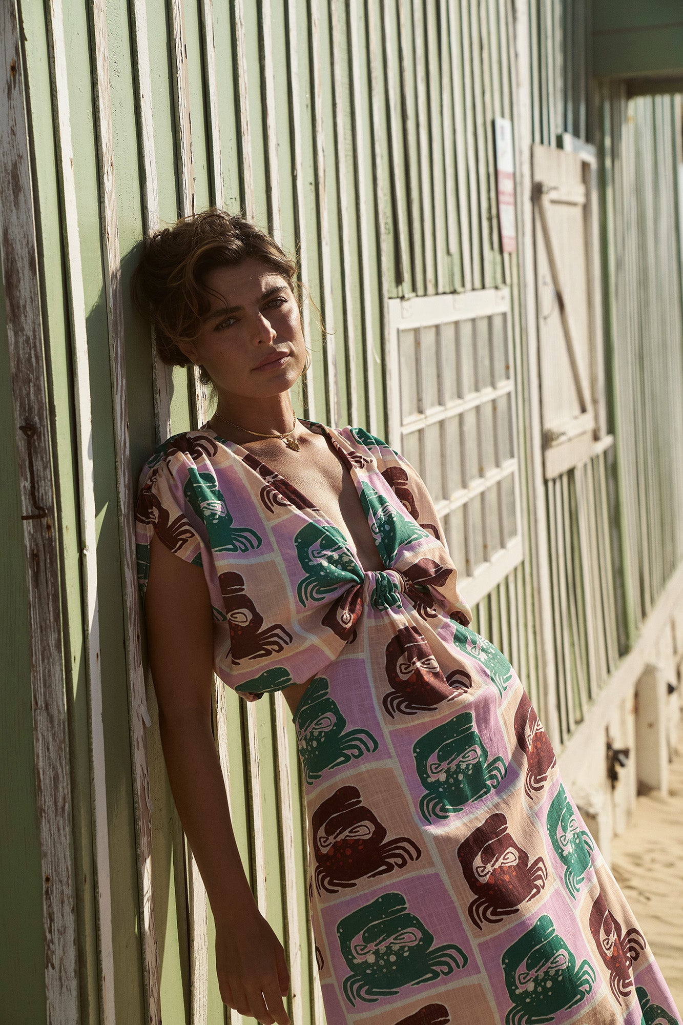 Full of details, extremely feminine and with a deep neckline at the front and an opening at the back, this dress was made to be worn by the sea.