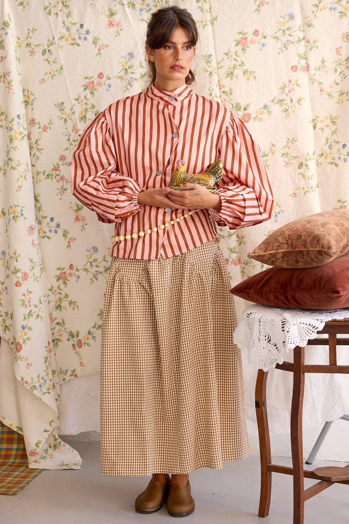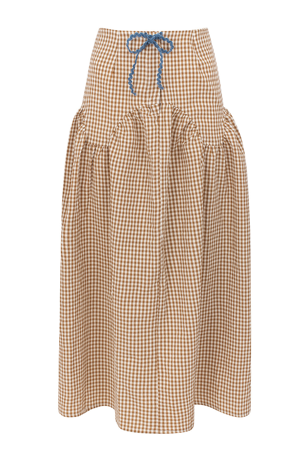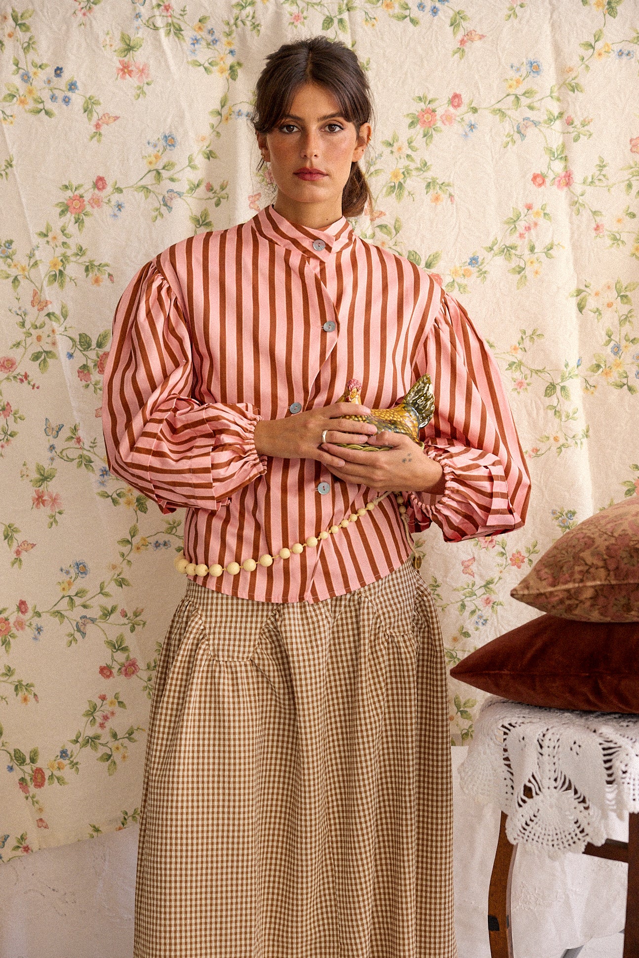 Our ROSA is a high-waisted skirt with contrasting ties and zipper, and it's perfect for any Autum look.