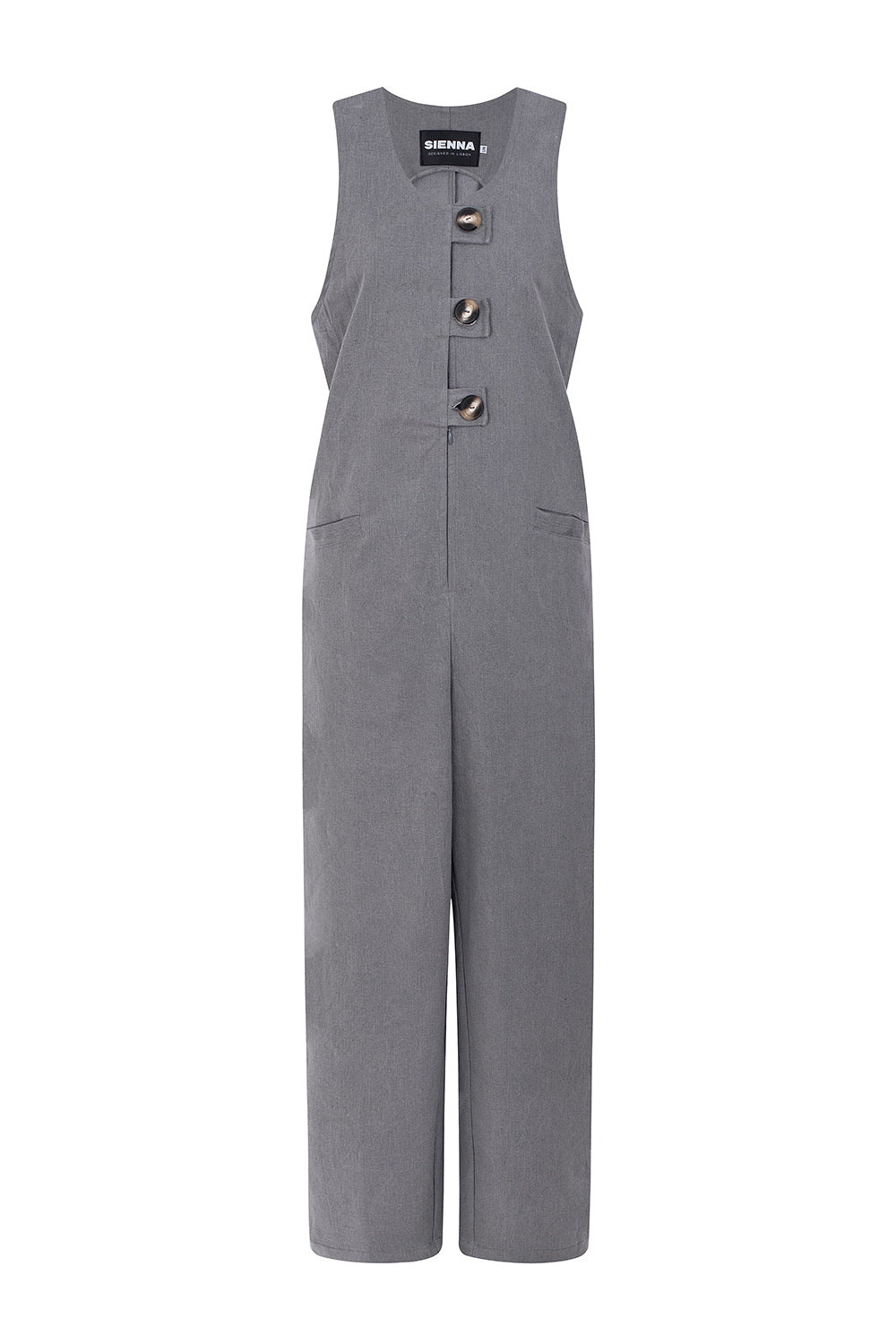 With 3 buttons on the front, invisible zipper and two side pockets, these will be the overalls of the season.