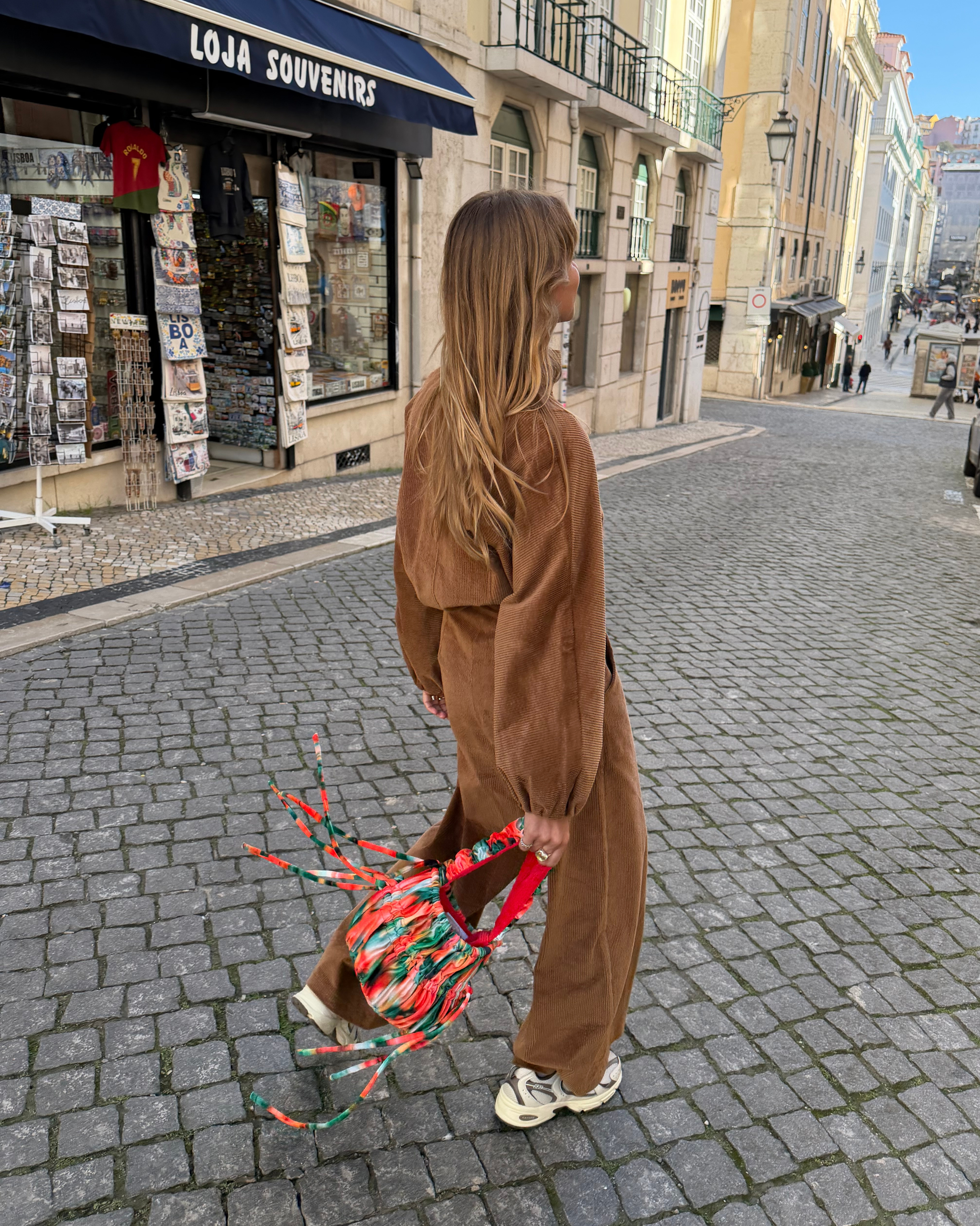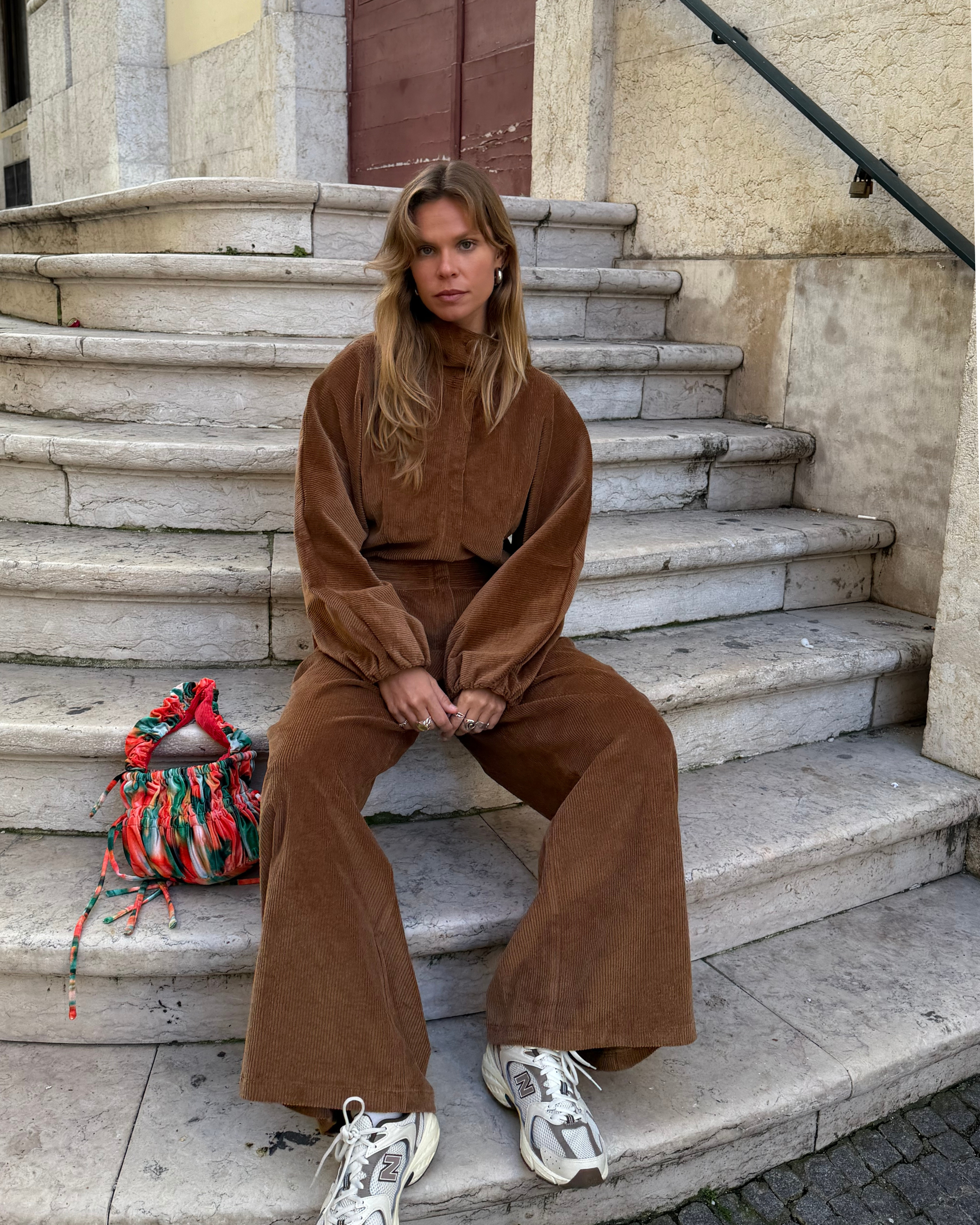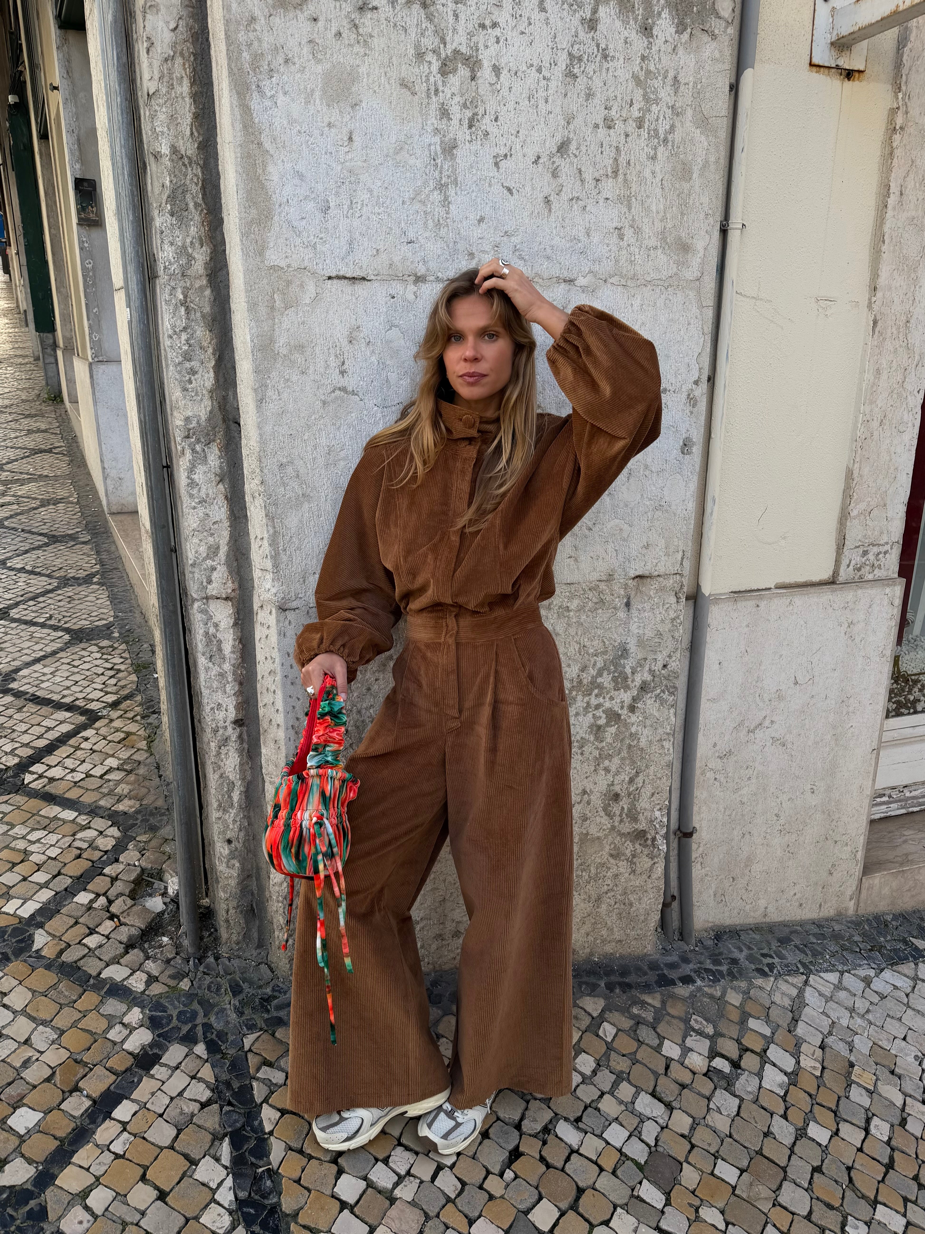 The corduroy texture creates a pattern of lines in the material that transforms the basic into something special. Ideal for dinners or strolls where comfort meets sophistication.