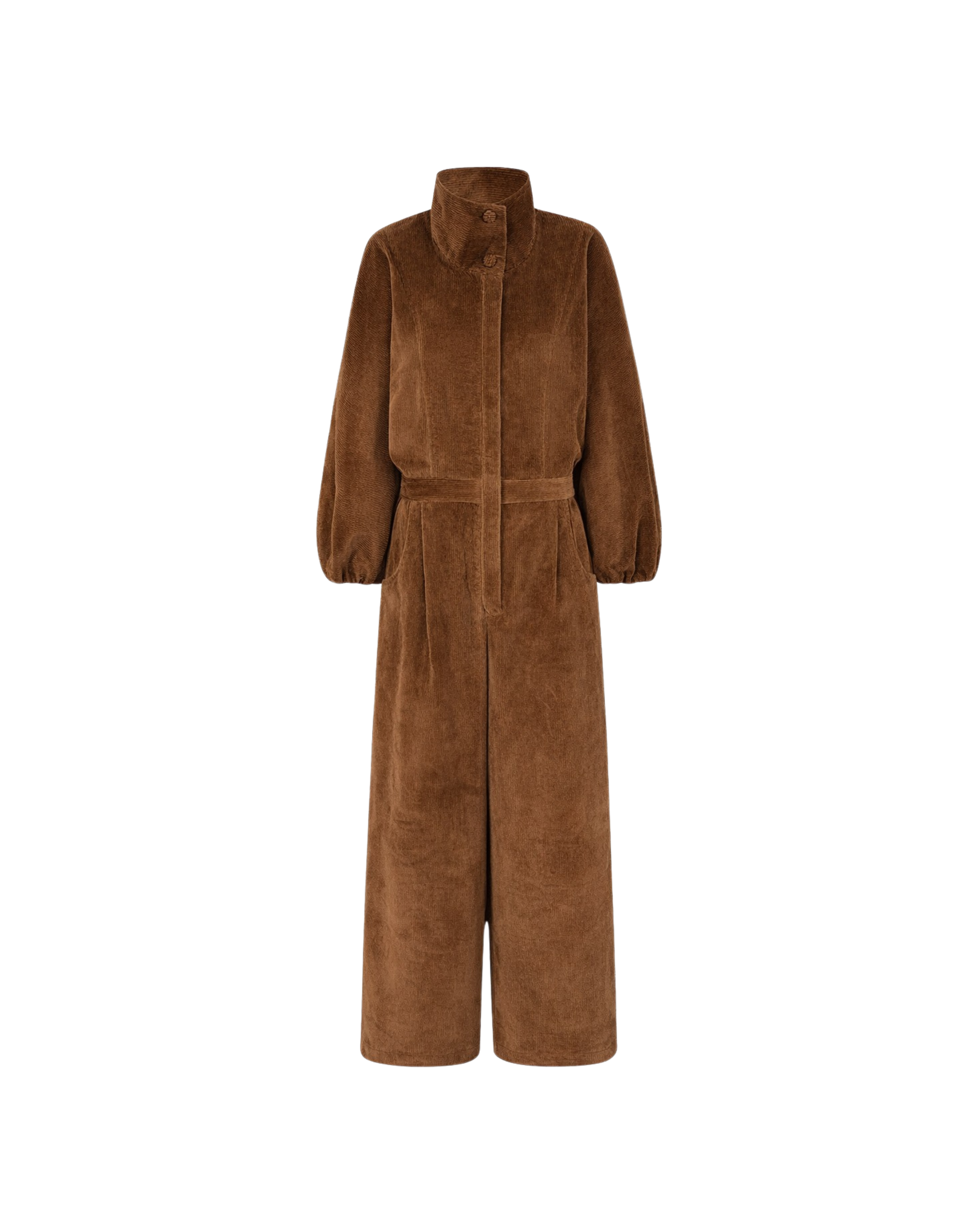 The RABBIT jumpsuit is one of our favorite pieces from the collection. In brown corduroy with a high collar, front zip fly, straight leg, and patch pockets, this jumpsuit is perfect for the coldest winter days.