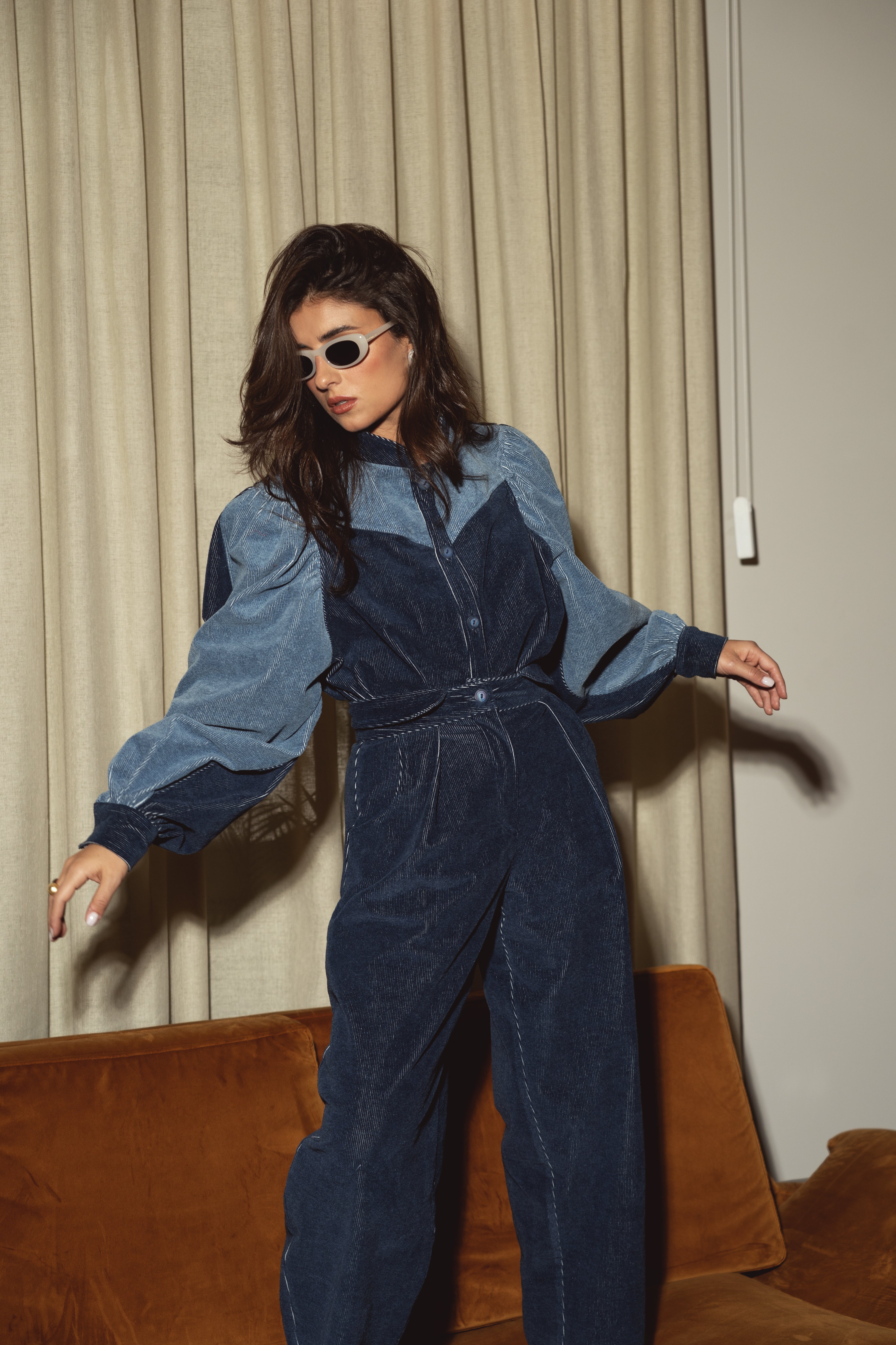 With puffed and pronounced sleeves, this blouse is beautiful and elegant. With details in two colors of corduroy, this shirt won't go unnoticed.