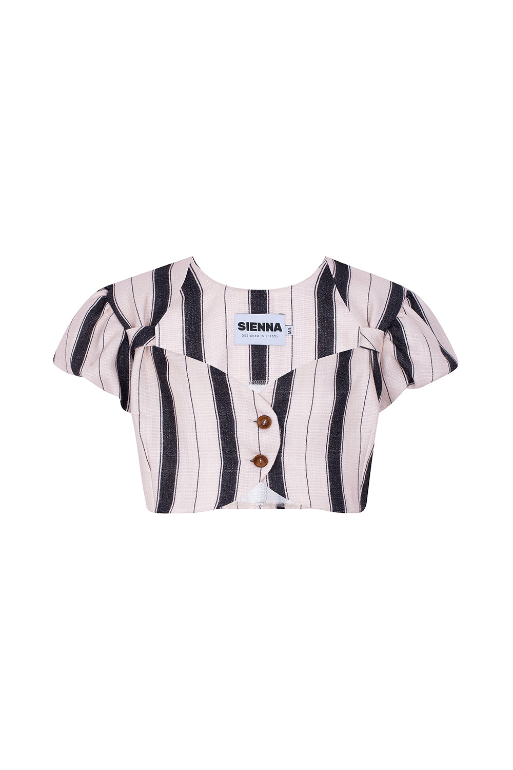 Com manga curta e botões na frente, este crop top é uma peça que poderá acompanha-la toda a estação de Primavera-Verão.