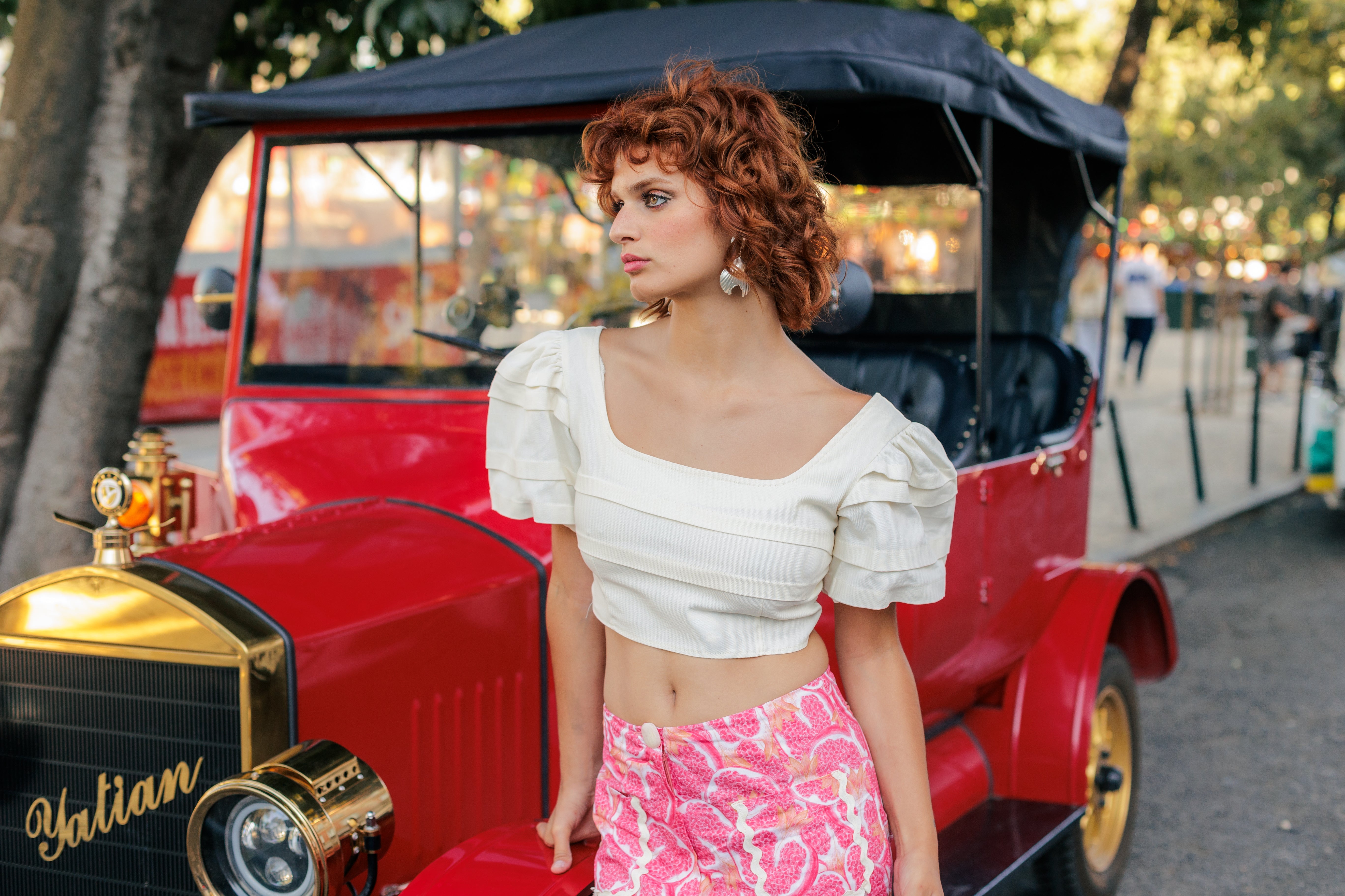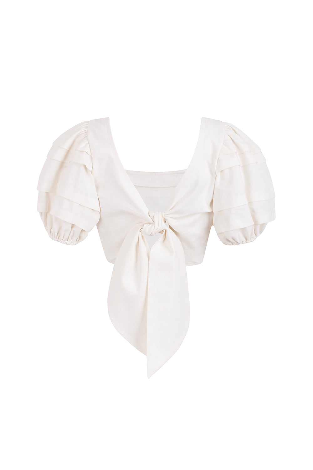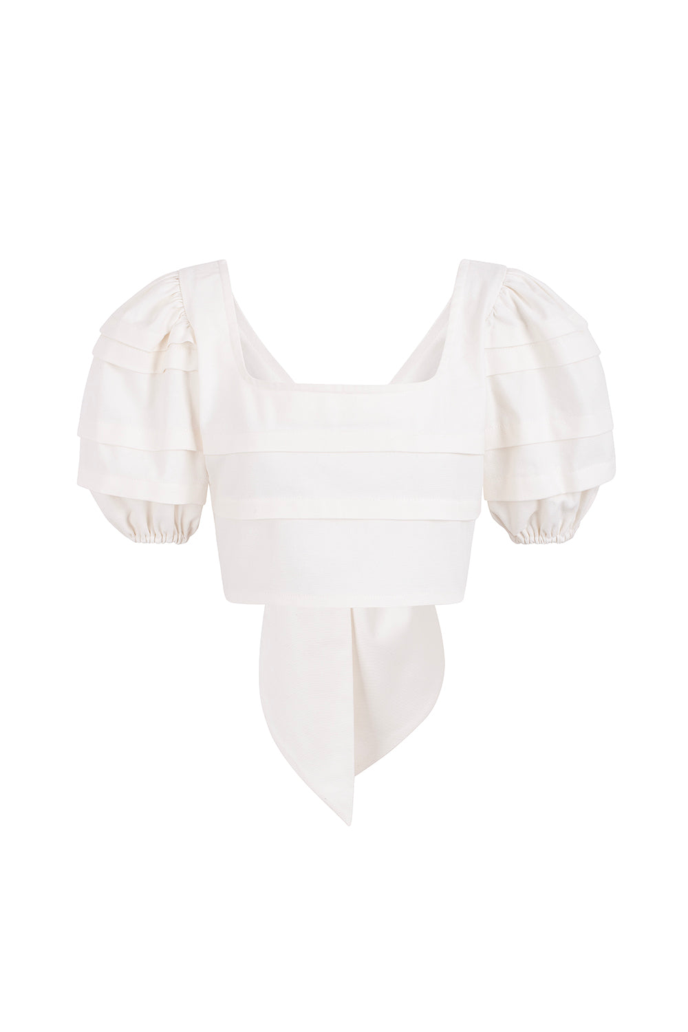 Our bestseller Frida is back! How we love it's ballon sleeves and it's romantic bow on the back. Made of cotton, this super versatile and feminine top can be combined with skirt, pants or shorts, depending on the occasion.