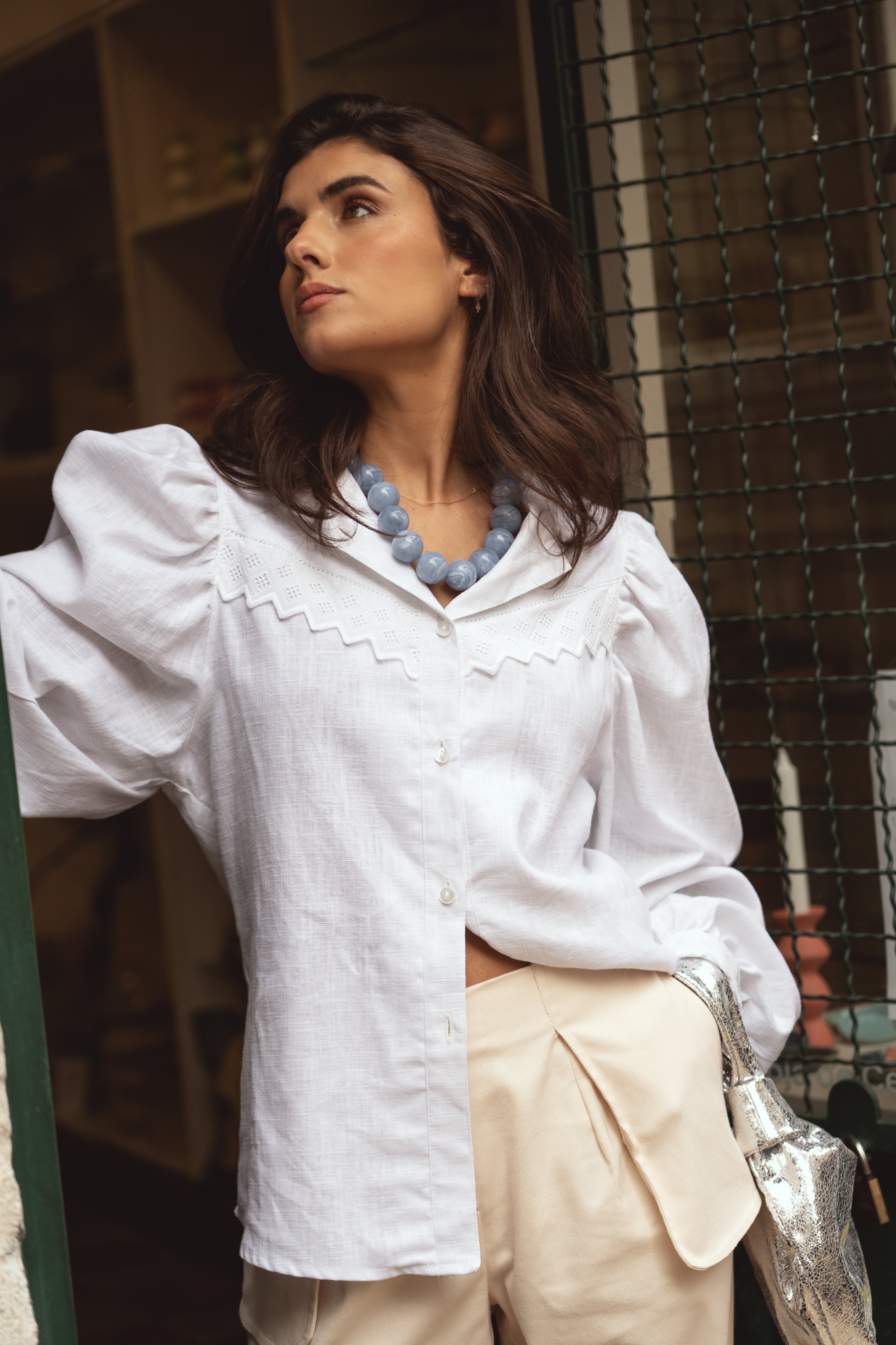 With puffy and pronounced sleeves, this blouse is beautiful and elegant. With lace details on the front and sleeves, this piece won't go unnoticed!