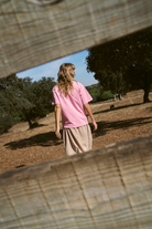 JUDITE is an oversized t-shirt with a loose, oversized fit and short sleeves, the perfect complement to your wardrobe. The embroidery, designed and created by SIENNA's team, is inspired by grandmothers' doilies, bringing a handcrafted and historic touch to a simple, everyday piece.