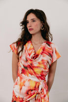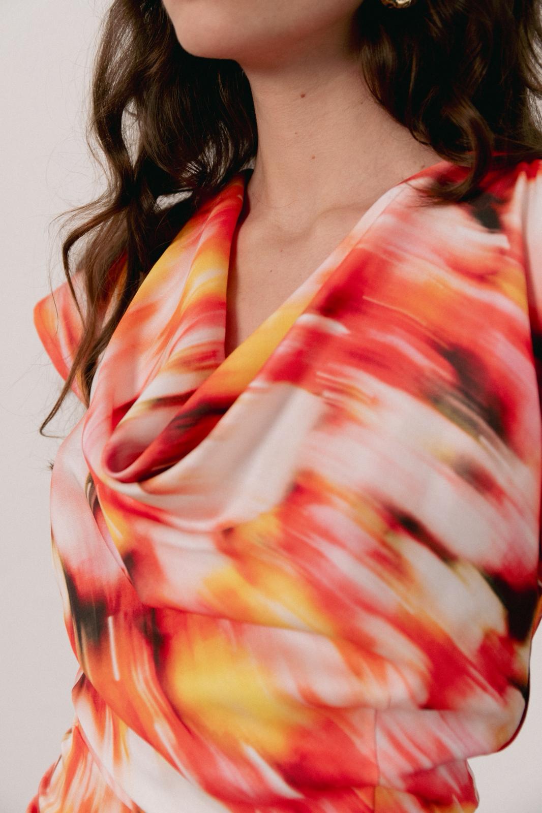 O Dahlia é um vestido longo, fluido e elegante. O decote com movimento e leveza cria uma silhueta feminina e elegante.