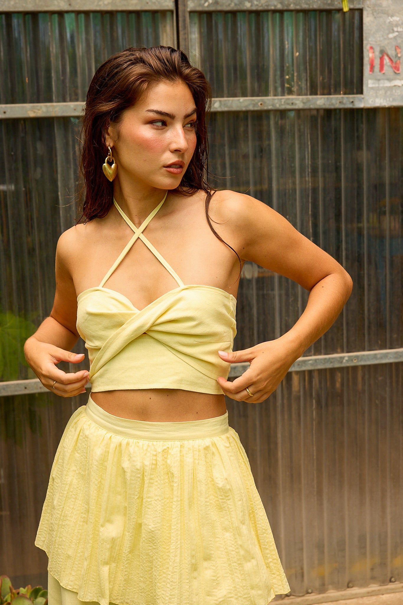 O nosso top FRANCESCA é único. A simular um laço na frente e com alças de atilhos, este top é fresco e perfeito para o verão.