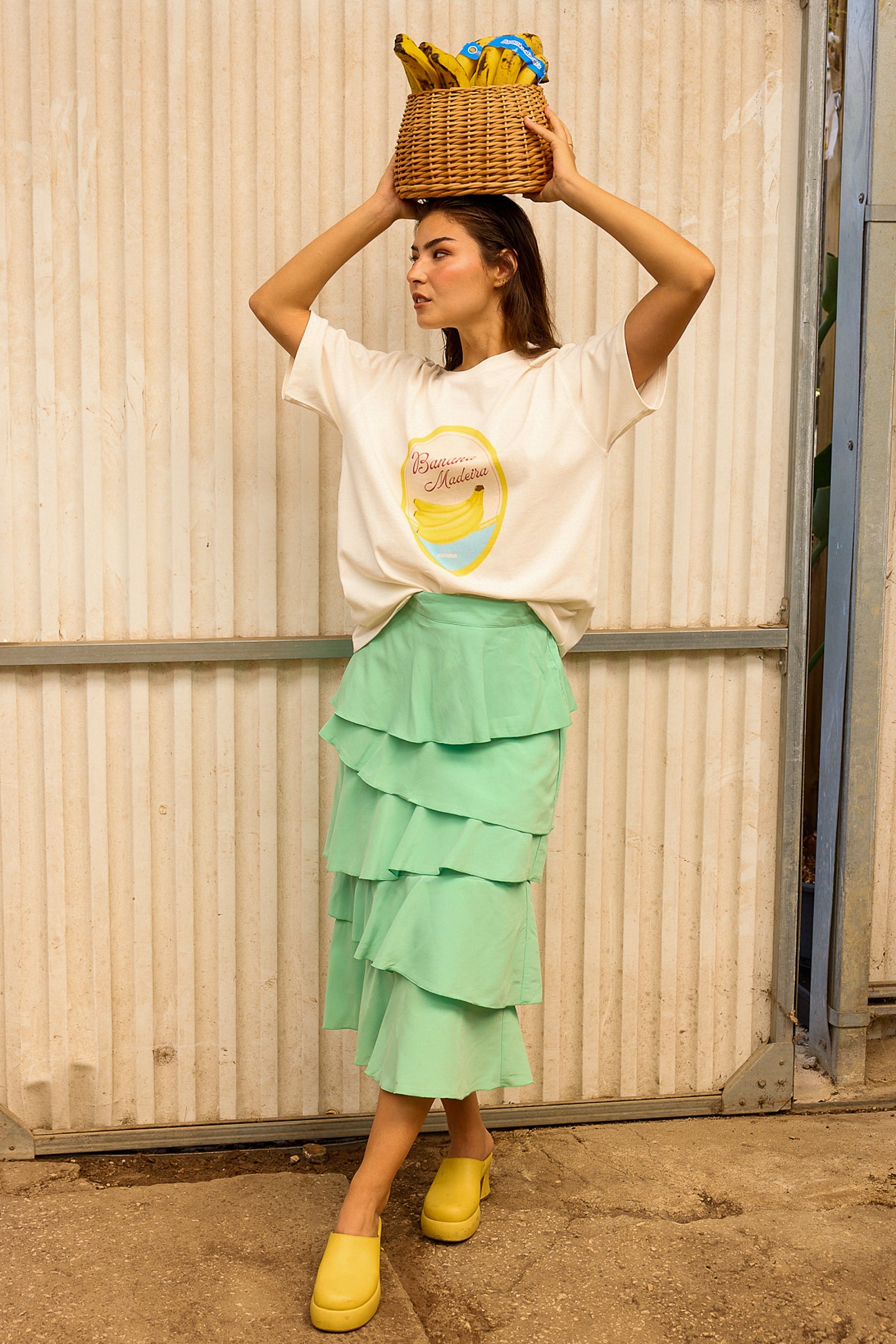 Our UNISEX T-SHIRT with the BANANA DA MADEIRA print is an ode to this iconic fruit from Madeira Island.