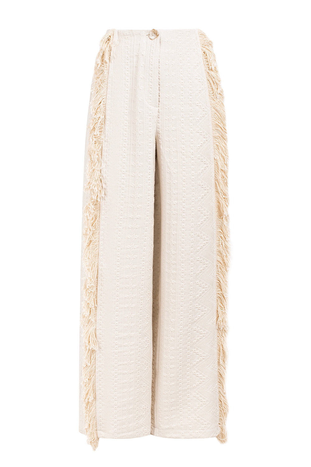 As nossas calças DJANGO são o mood da coleção RODEO. Com corte a direito e franjas na lateral, estas calças confecionadas em tecido texturado são perfeitas para conjugar com o casaco do mesmo conjunto ou com o nosso crop top HAVANA.