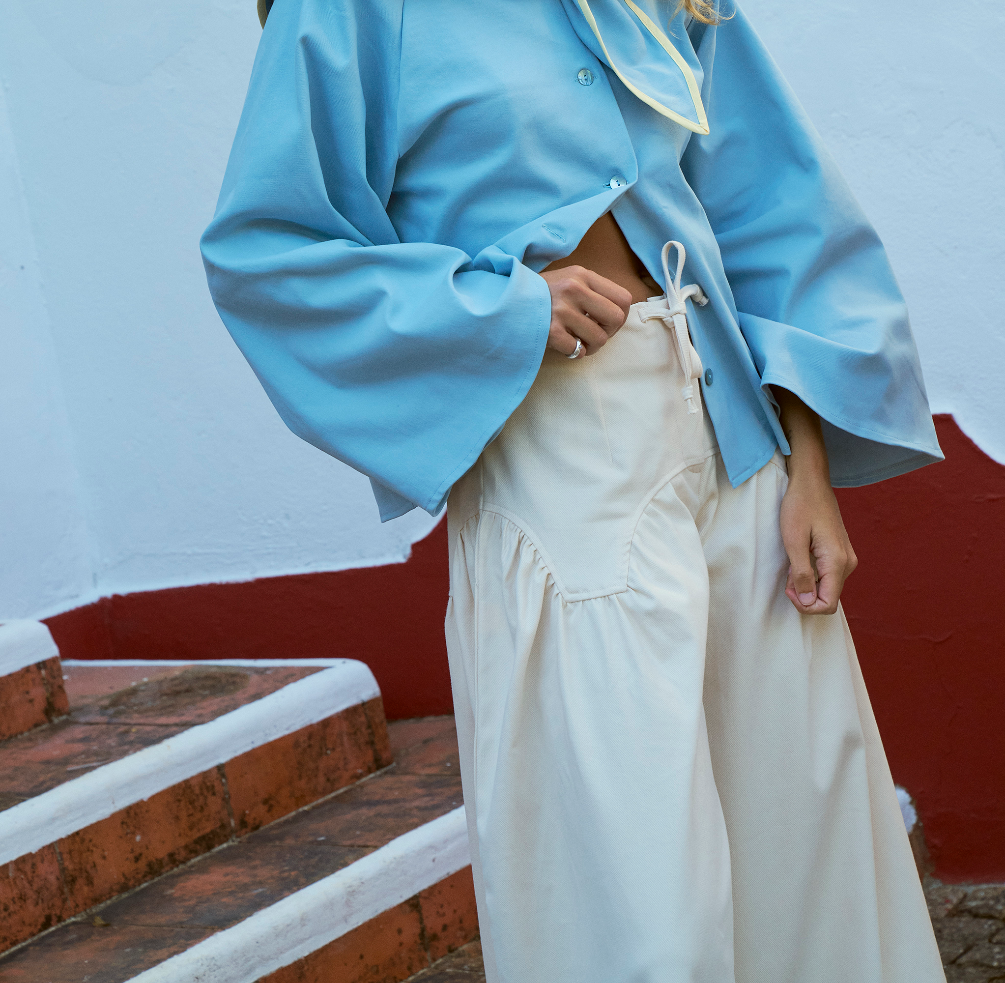 PALMIRA are high-waisted wide-leg pants that breathe memories.