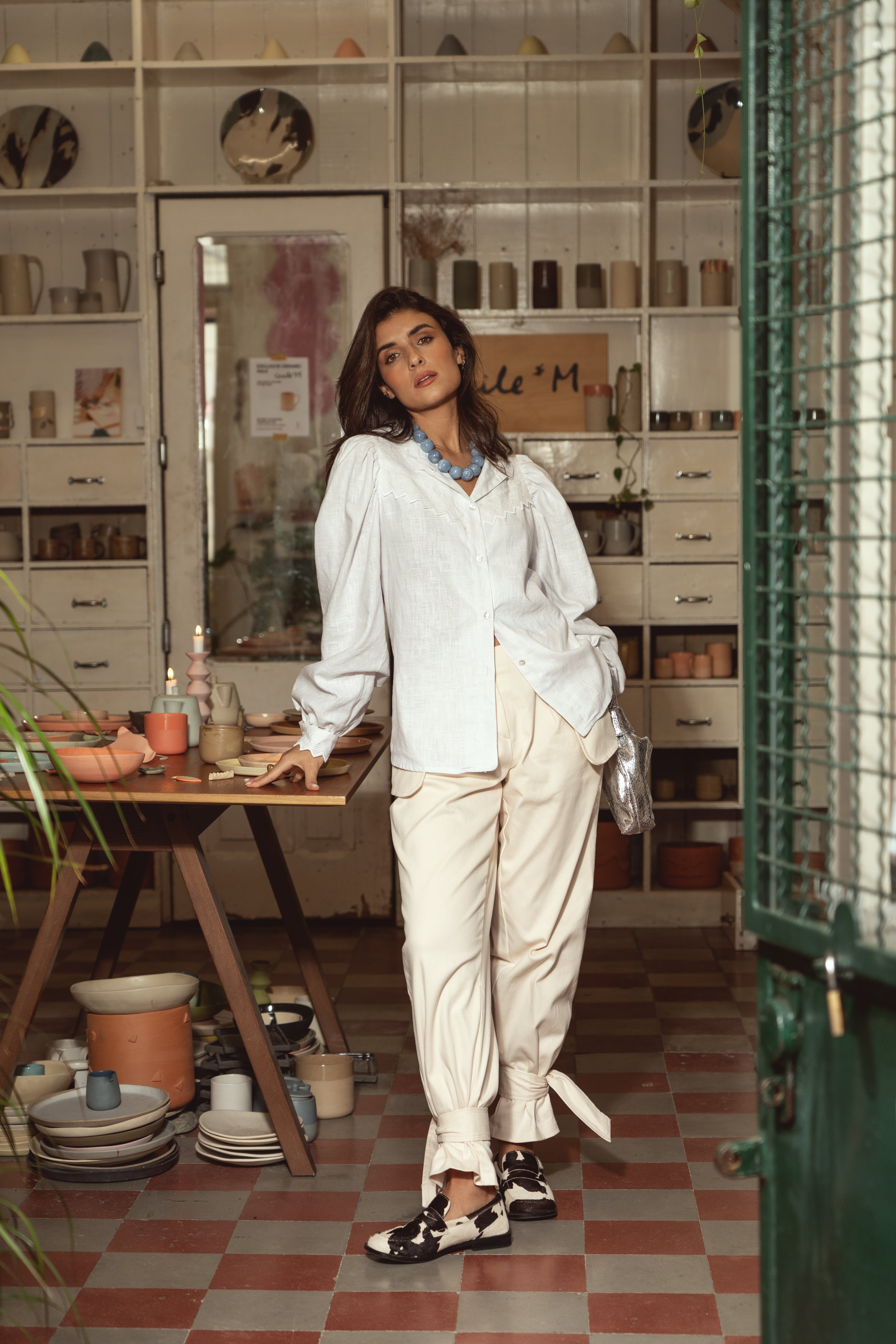 O nosso novo modelo de calças TRUMAN é perfeito para coordenar com o casaco do conjunto, ARCHIE. Com o seu fit wide-leg e fitas na base para fazer efeito balão, estas calças são a definição de descontração e coolness.