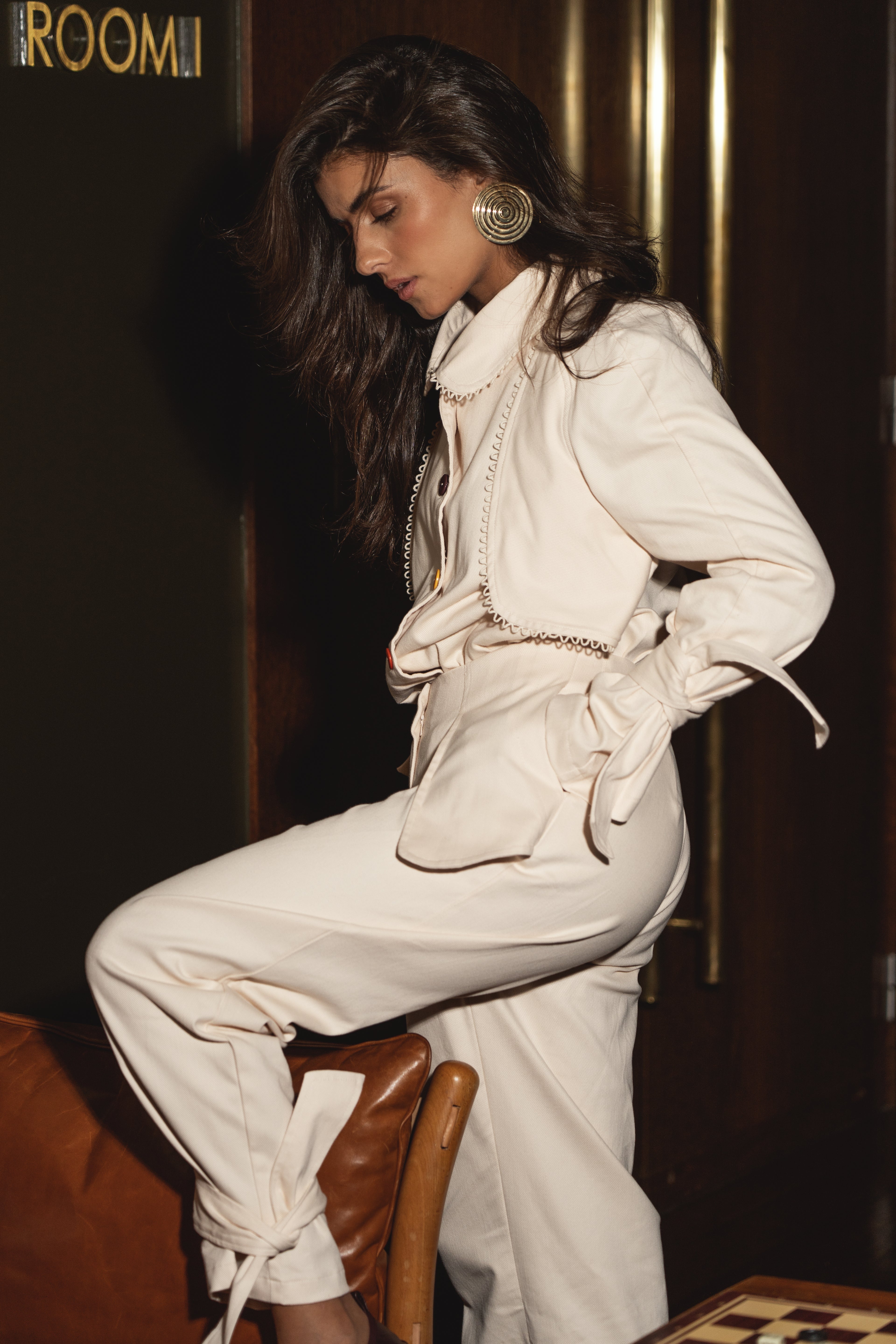 Our new model TRUMAN is perfect to coordinate with the set's jacket ARCHIE. With their wide-leg fit and ribbons at the base for a balloon effect, these trousers are the definition of relaxed and cool.
