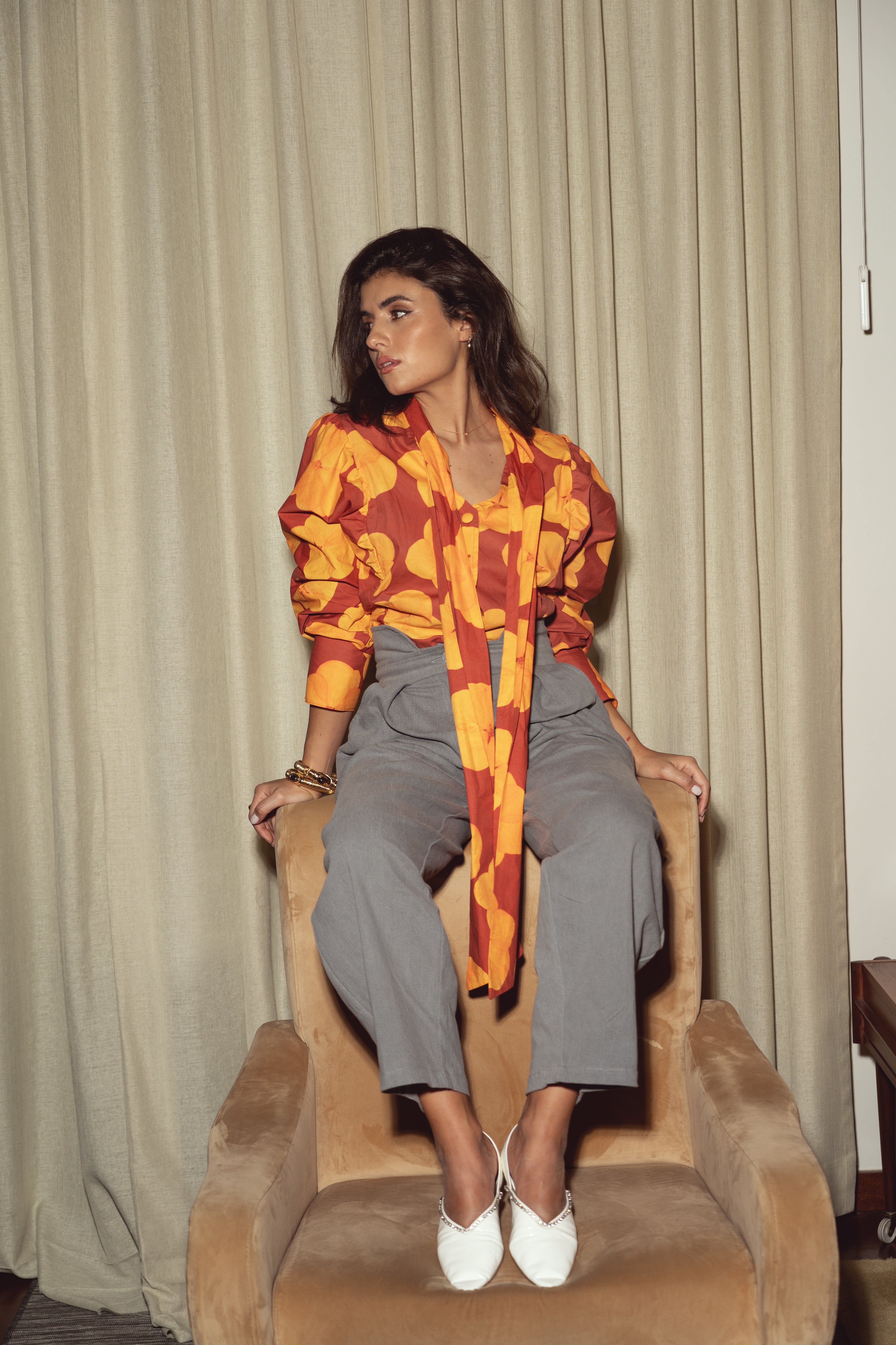We love our REVIVAL blouse. From the bat sleeves, with ties on the wrists, to the covered buttons on the front, this blouse is great for any context, from work to party celebrations.
