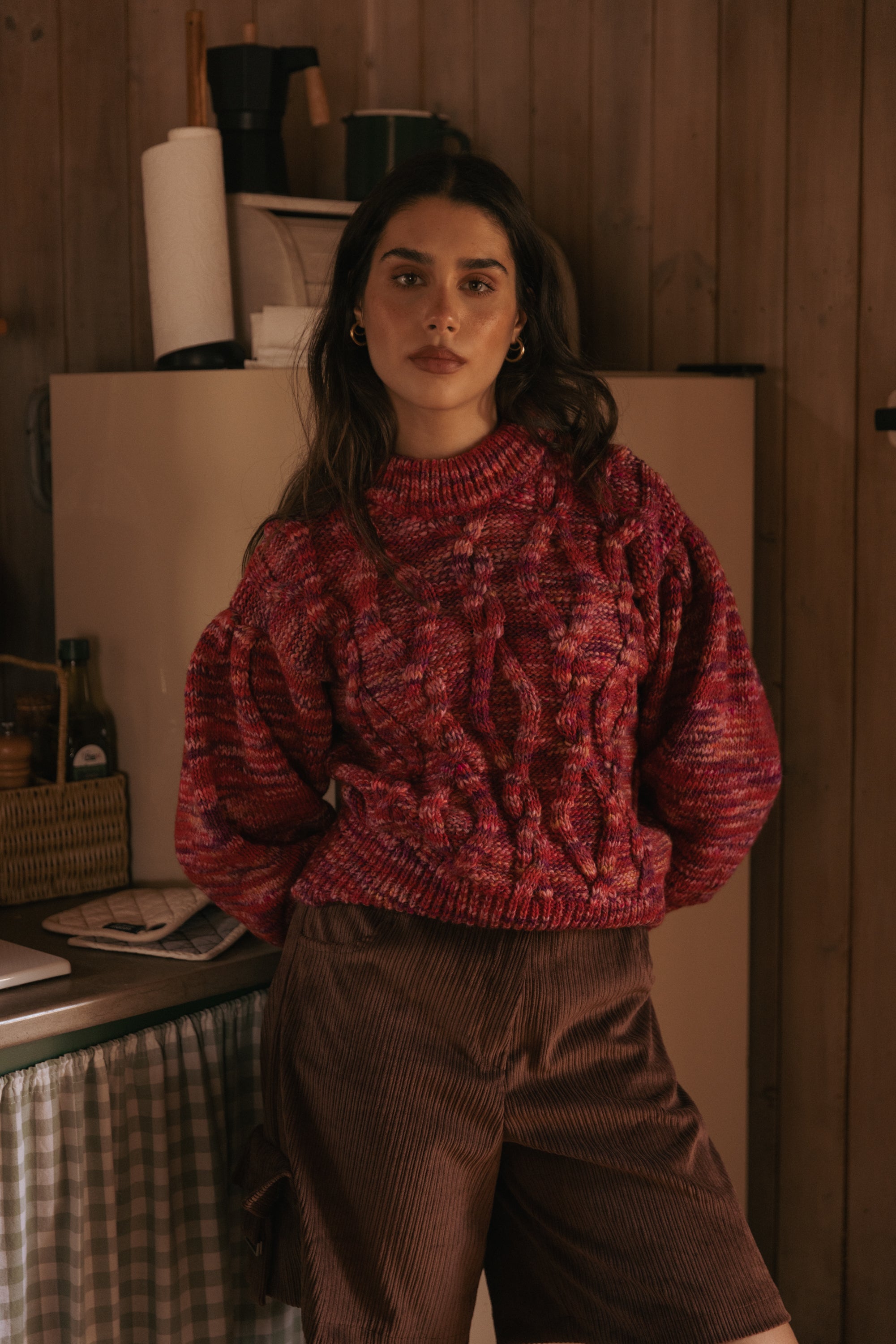 With a Perkins collar, balloon sleeve, high wrist and hem, as well as decorative cable knit in the front, our BRIXTON sweater goes well with trousers, skirts or even dresses. Made from 25% wool, in Portugal, this is the knitwear that will accompany you throughout the cold season.