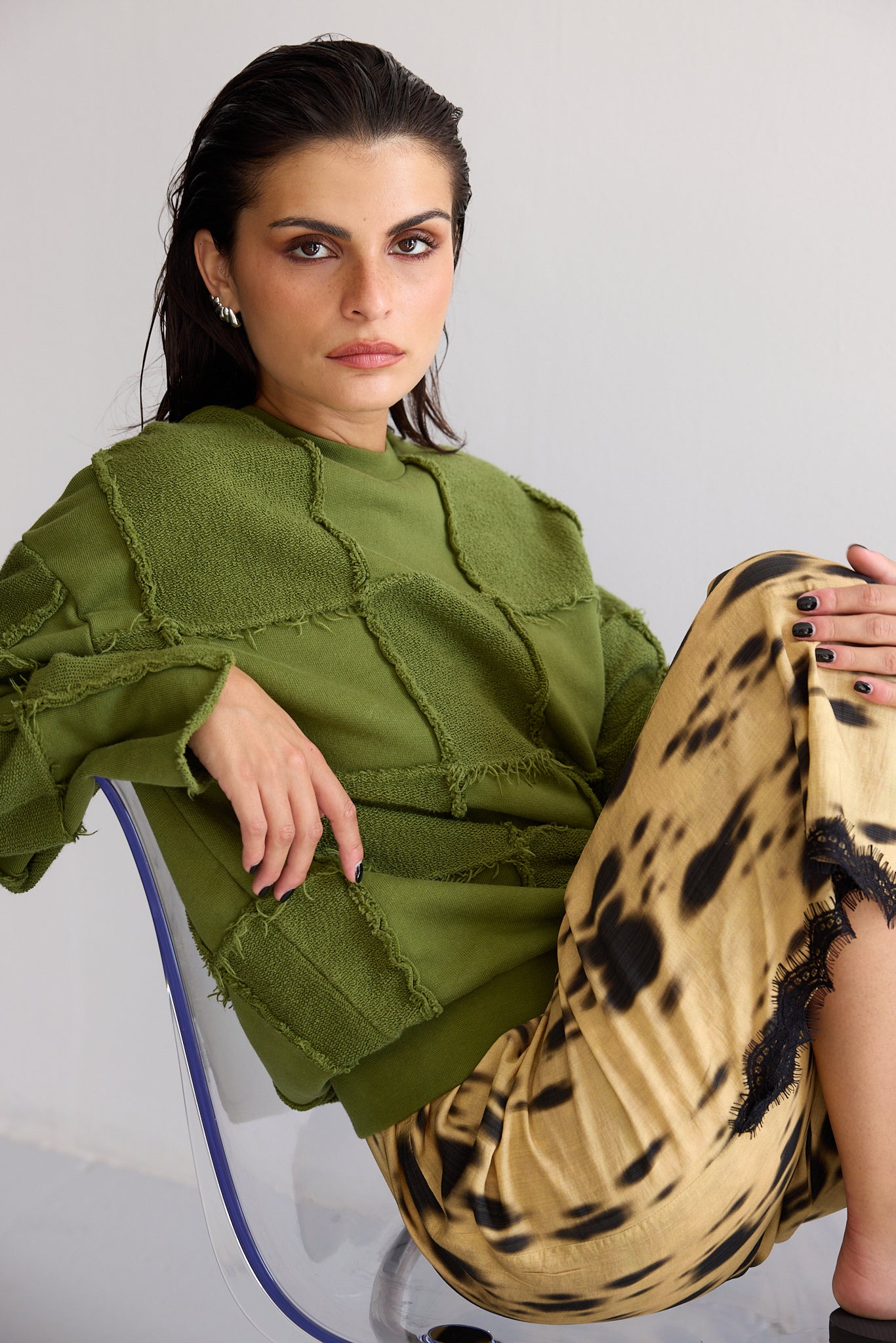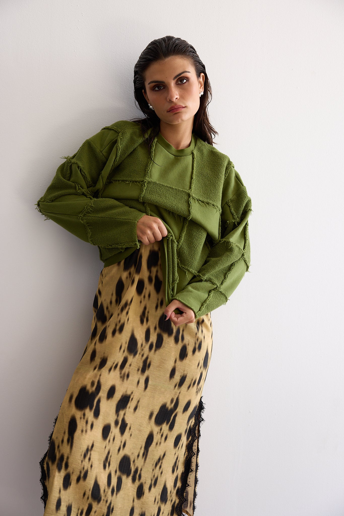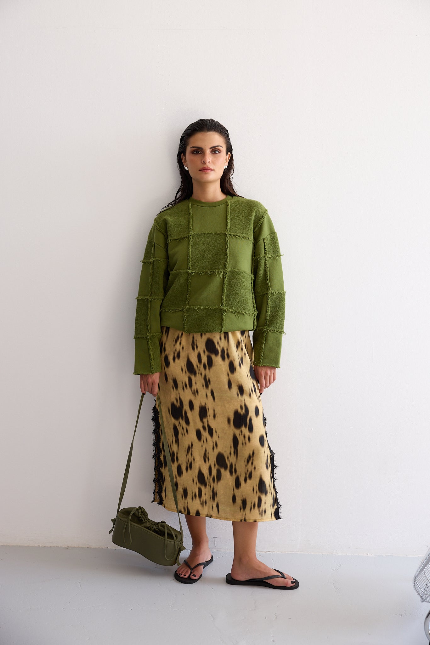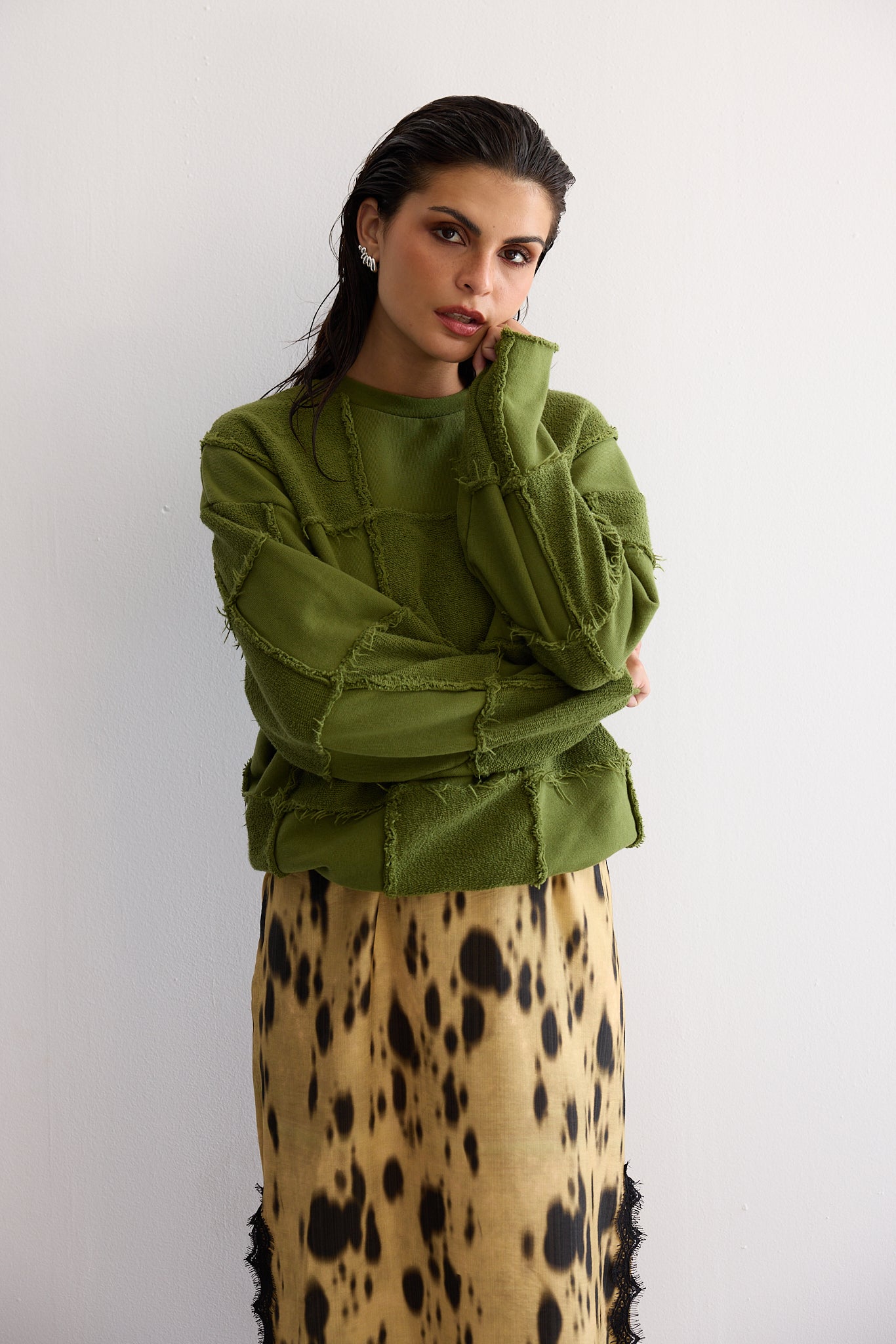 FRANCES patchwork sweater - OLIVE