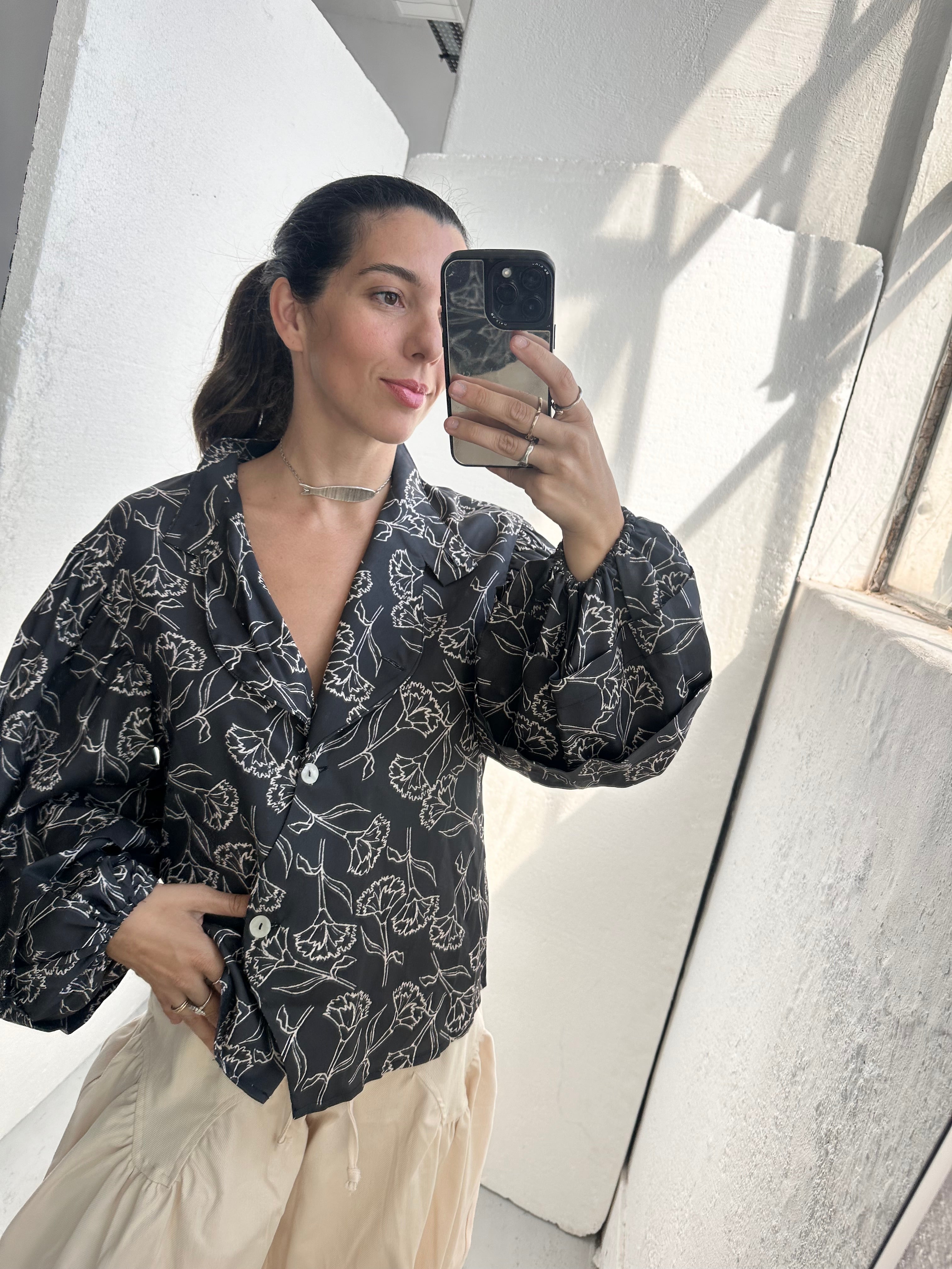 LISETE shirt - BLACK CARNATIONS