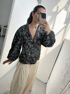 The pattern was designed by the Sienna team, inspired by this vintage and traditional motif, but reinvented in a cool and modern way. A stylish piece that pairs perfectly with the PALMIRA pants.