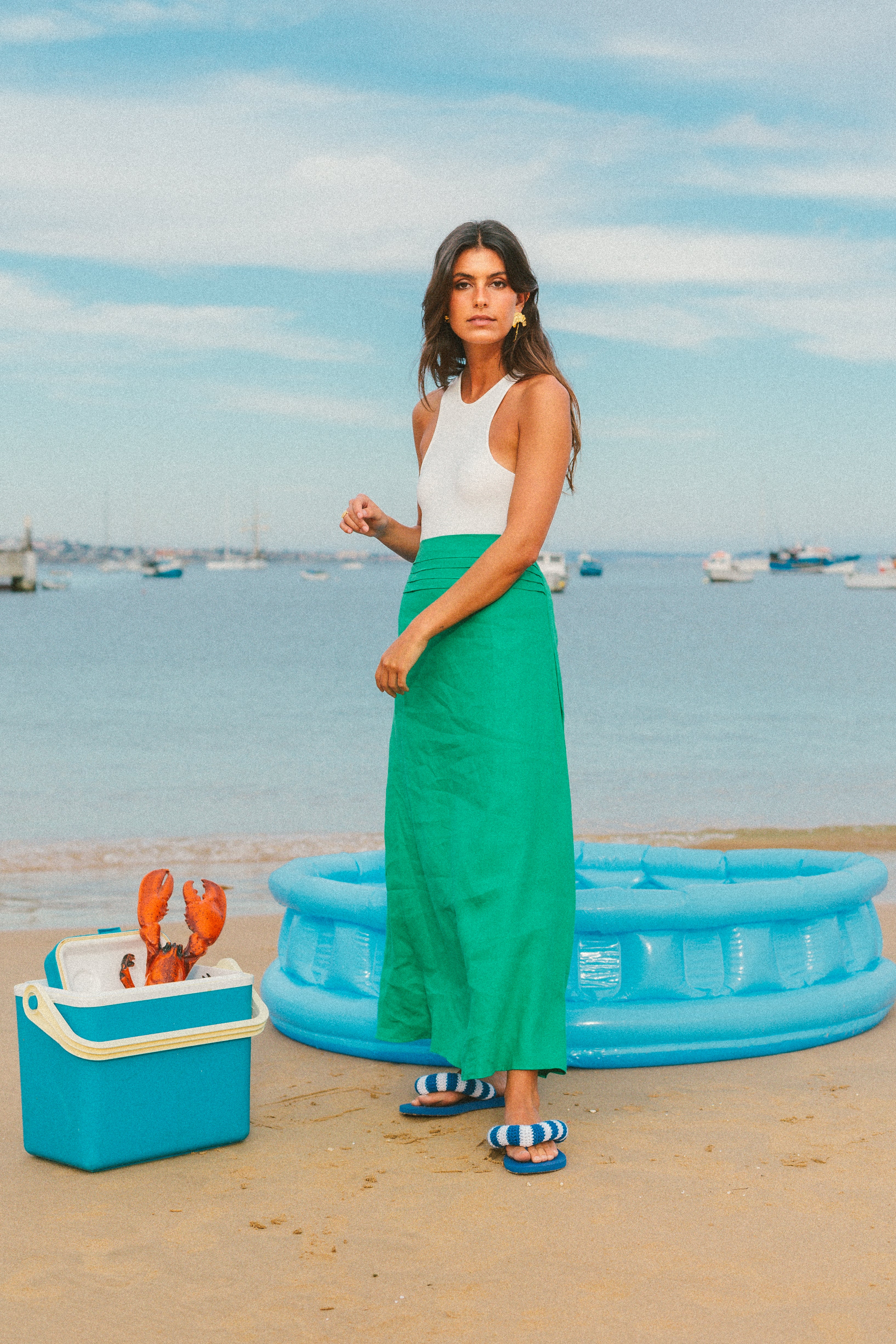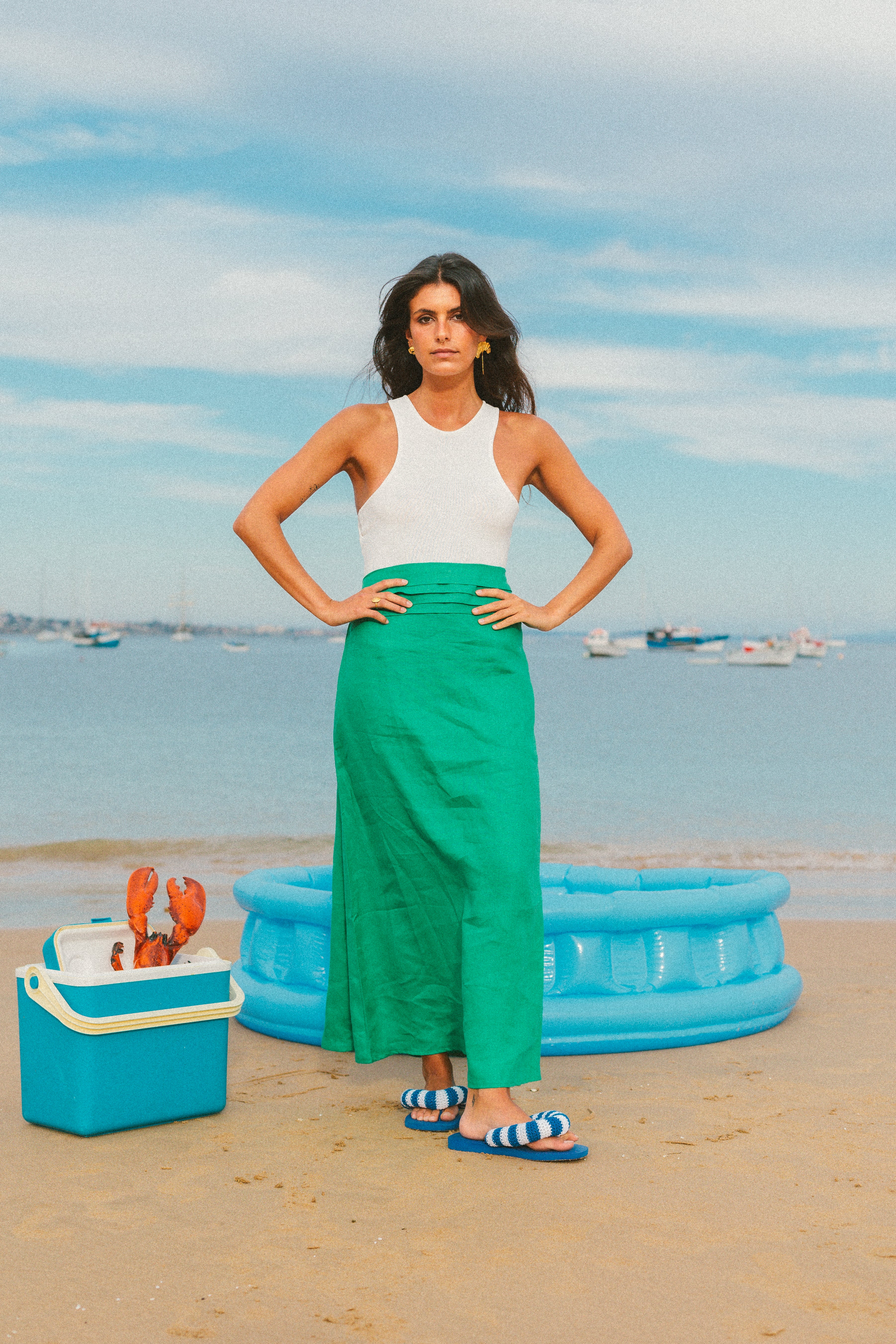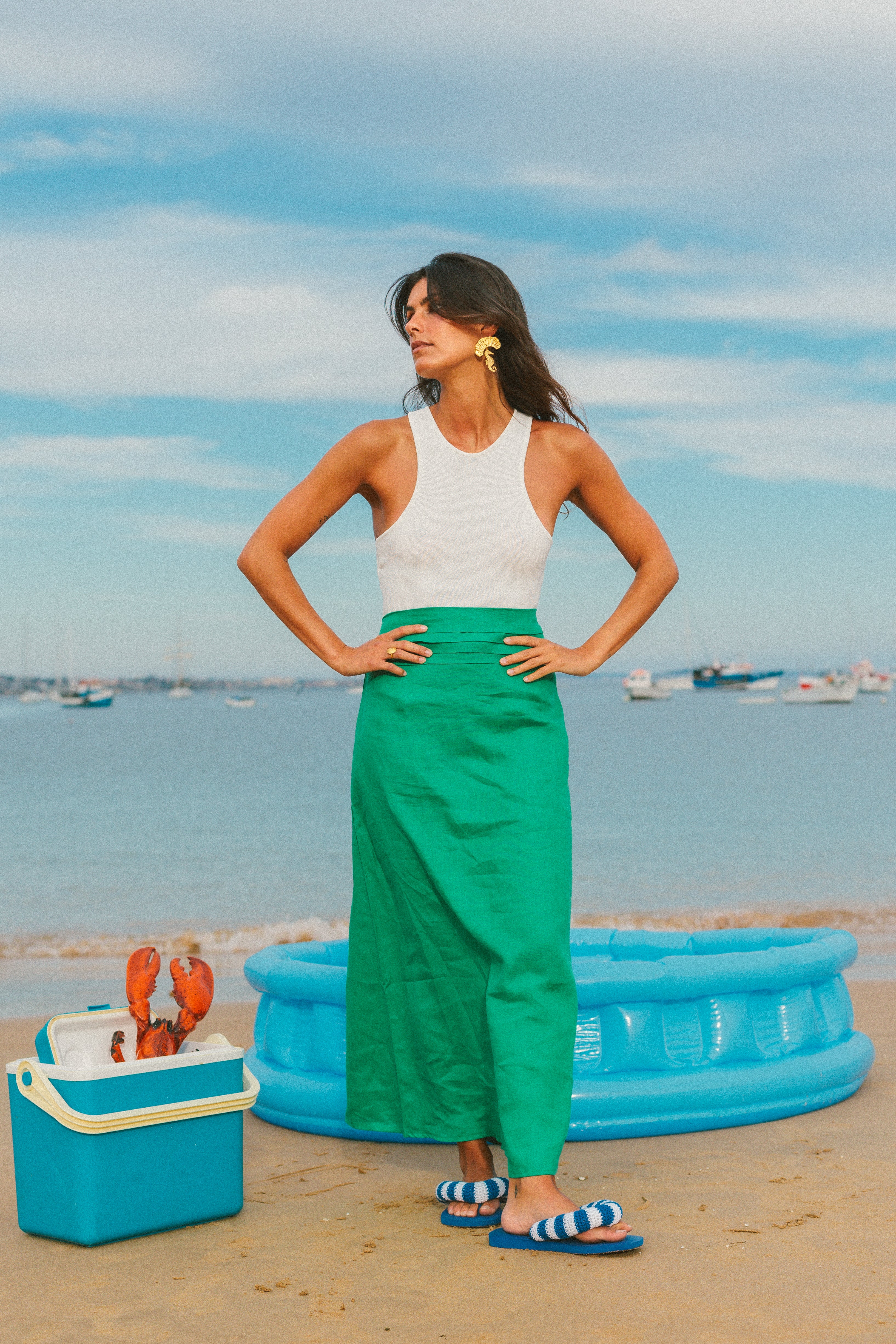 Our LYDIA dress is minimalist, strapless and drop-dead gorgeous! In addition, it can be transformed into a long skirt. If you wear it as a skirt, we suggest pairing it with our HAVANA top or our ANNA t-shirt.