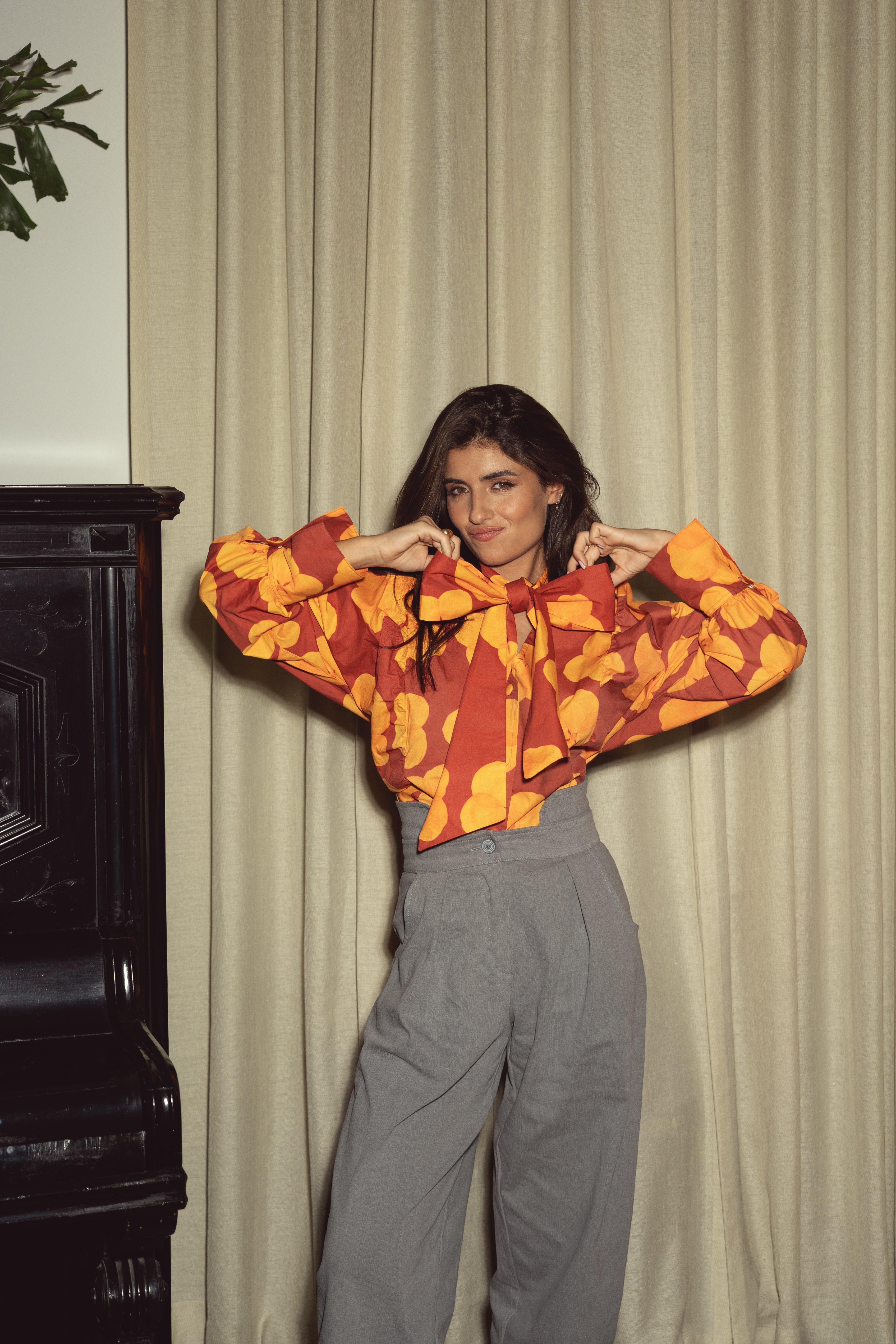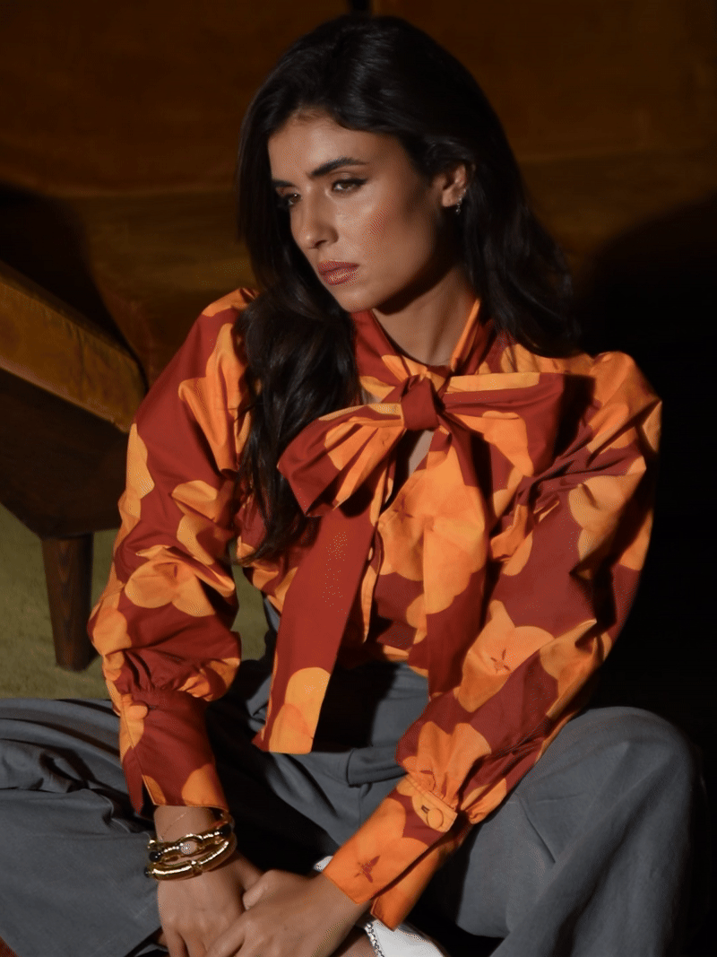 We love our REVIVAL blouse. From the bat sleeves, with ties on the wrists, to the covered buttons on the front, this blouse is great for any context, from work to party celebrations.